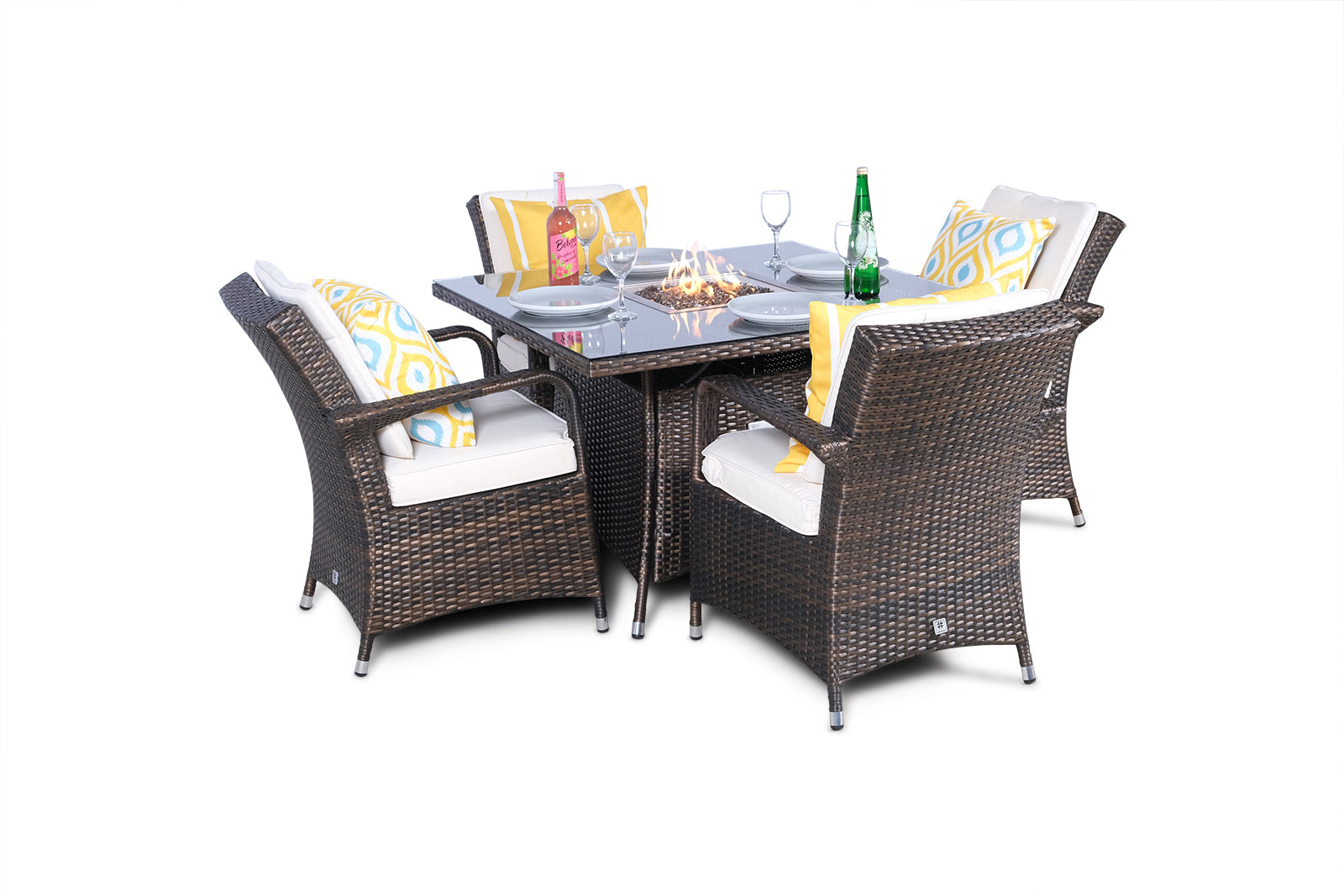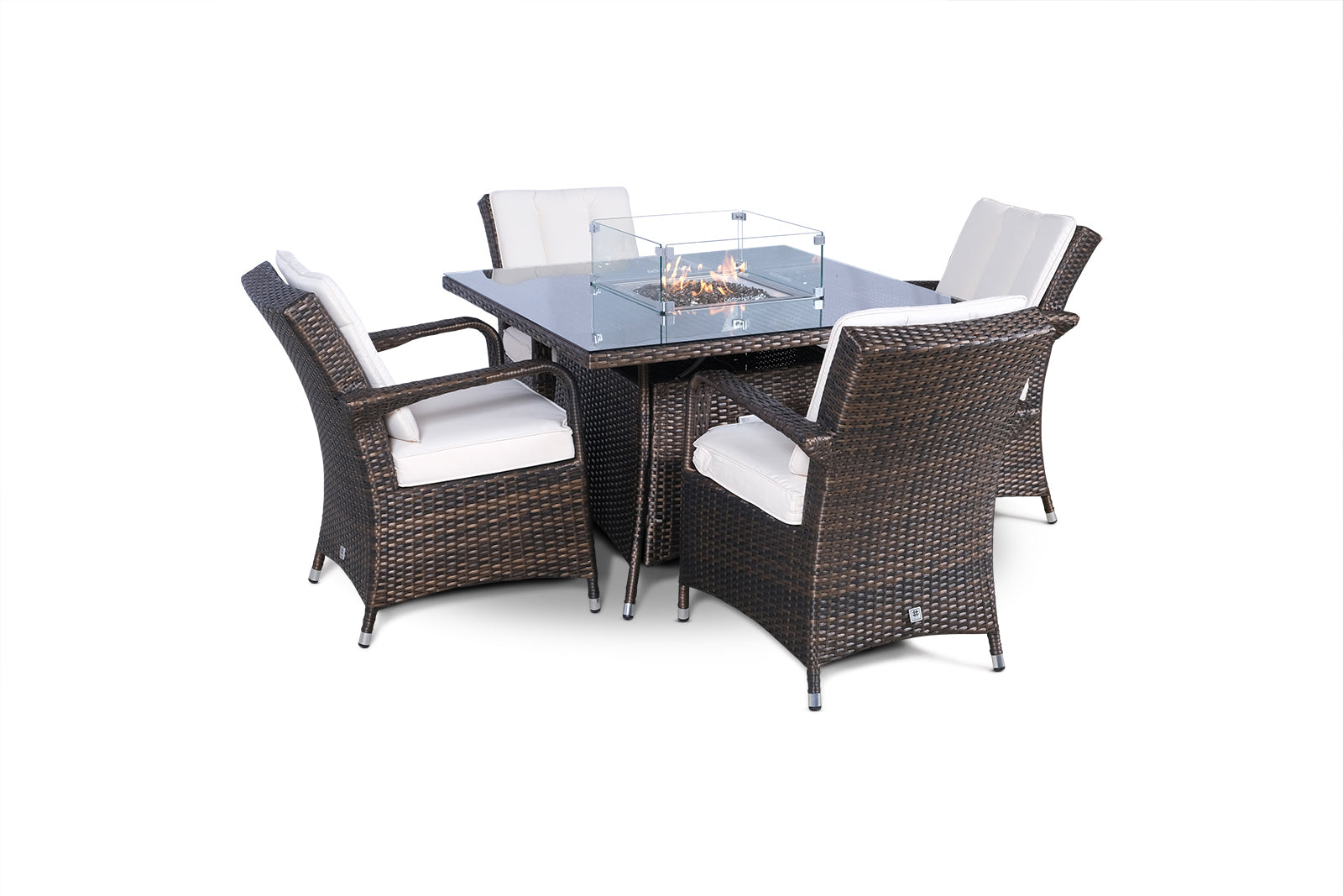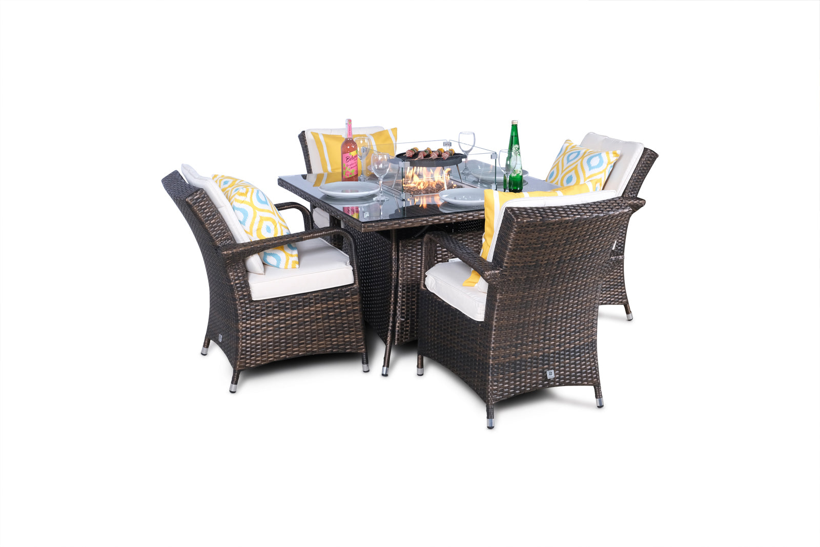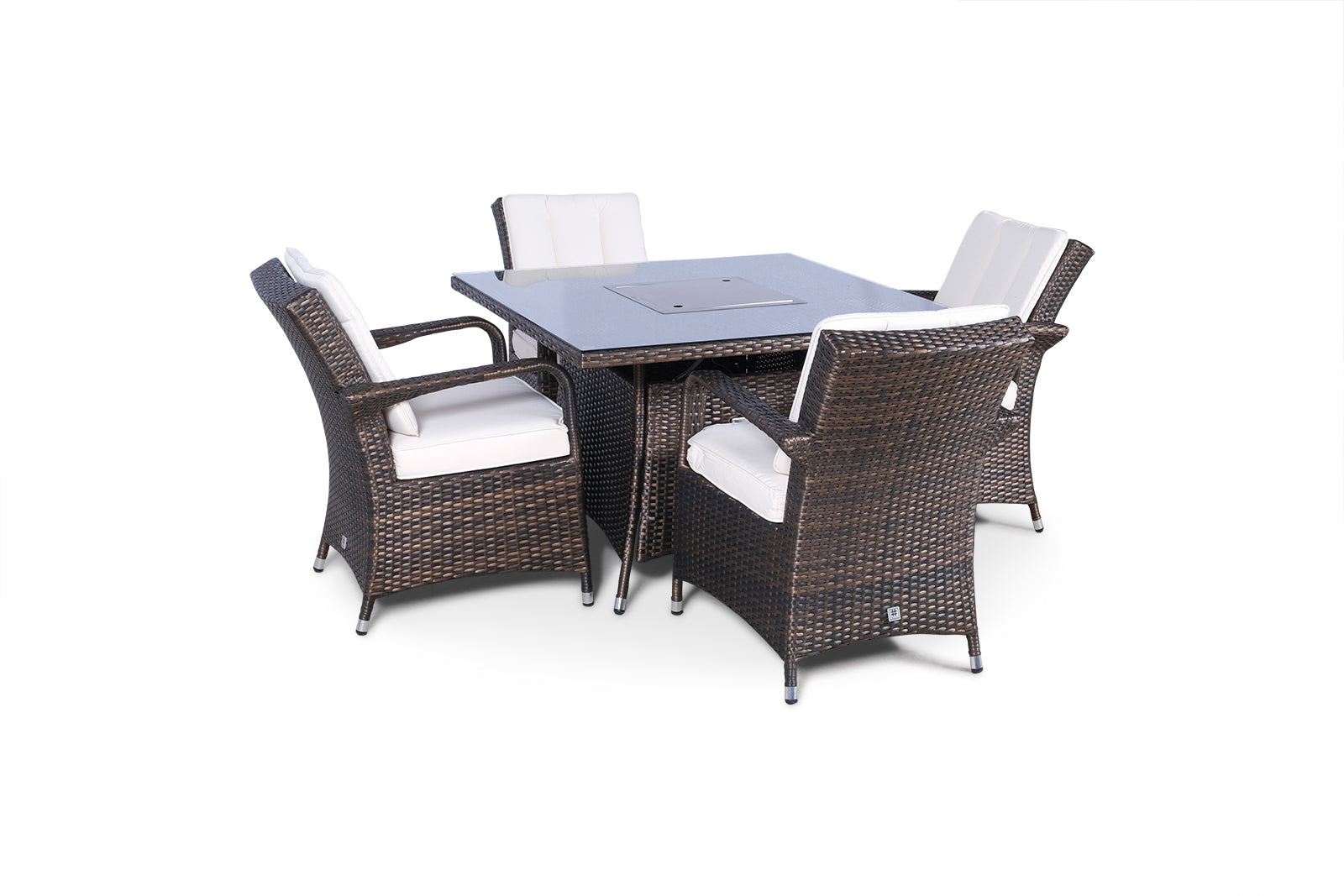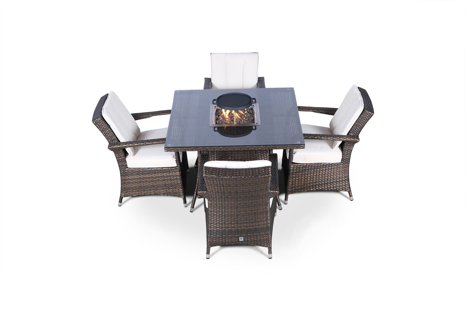 Arizona Fire Pit 4 Seater Square Rattan Dining Set - Brown