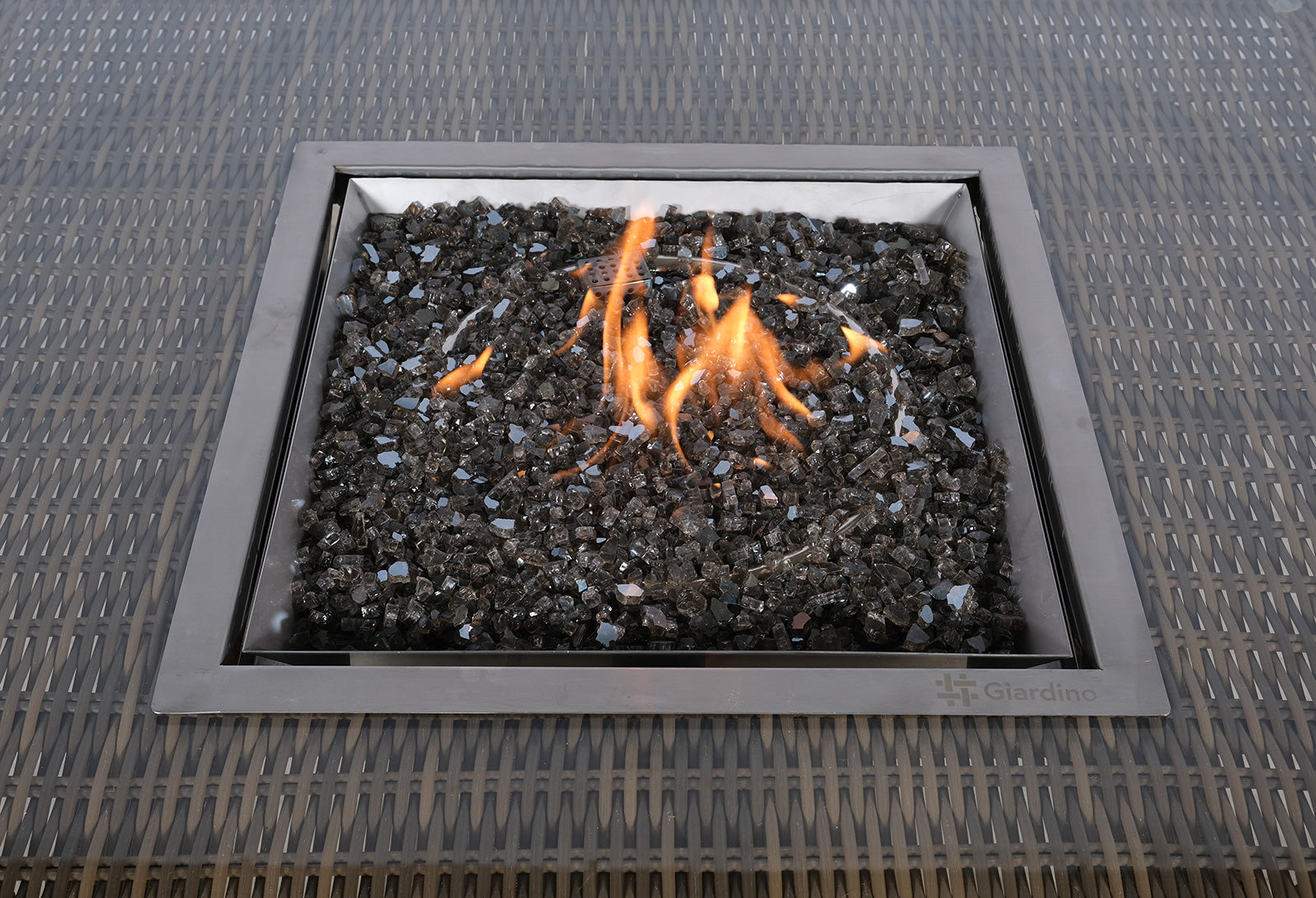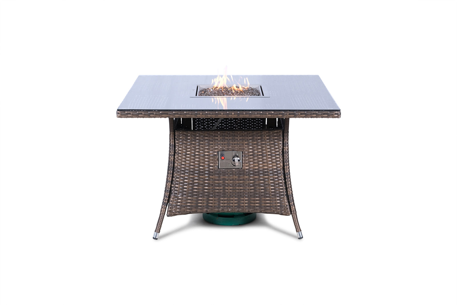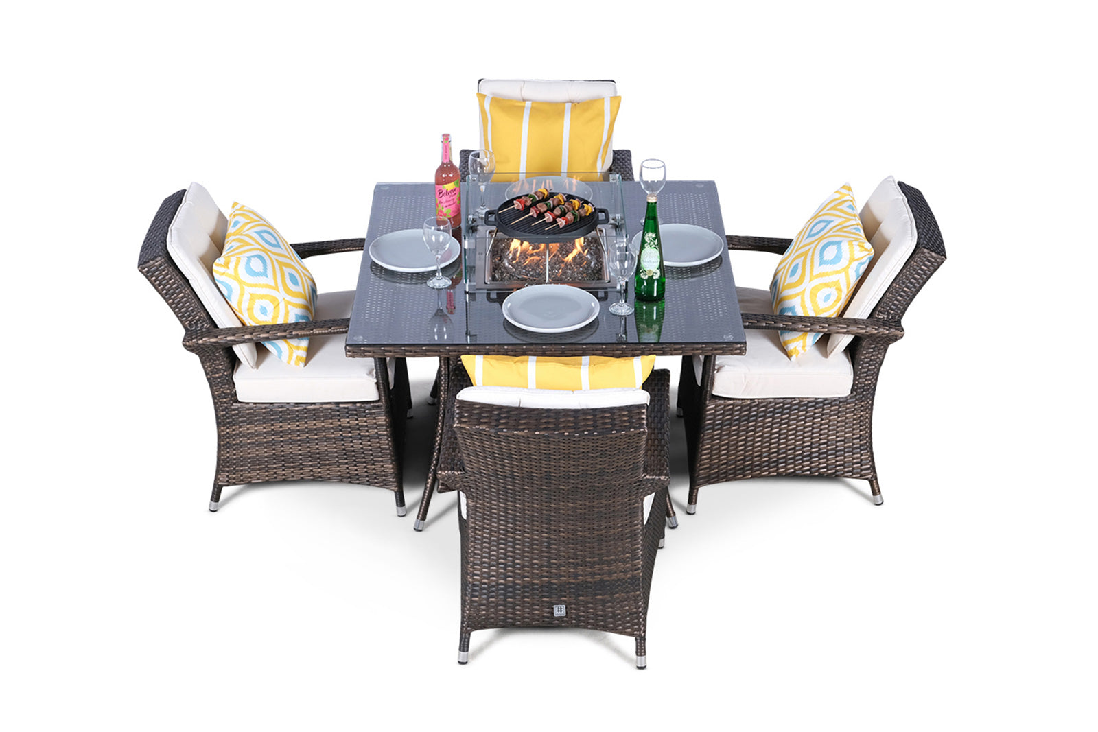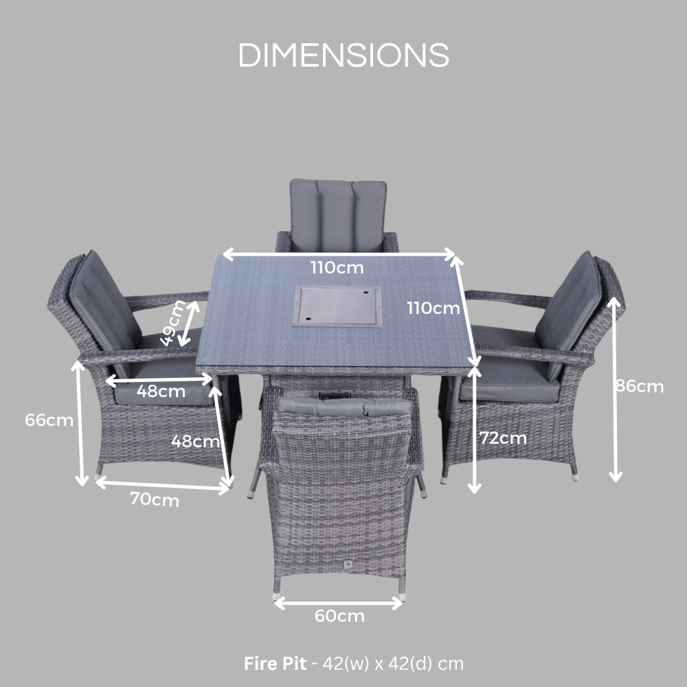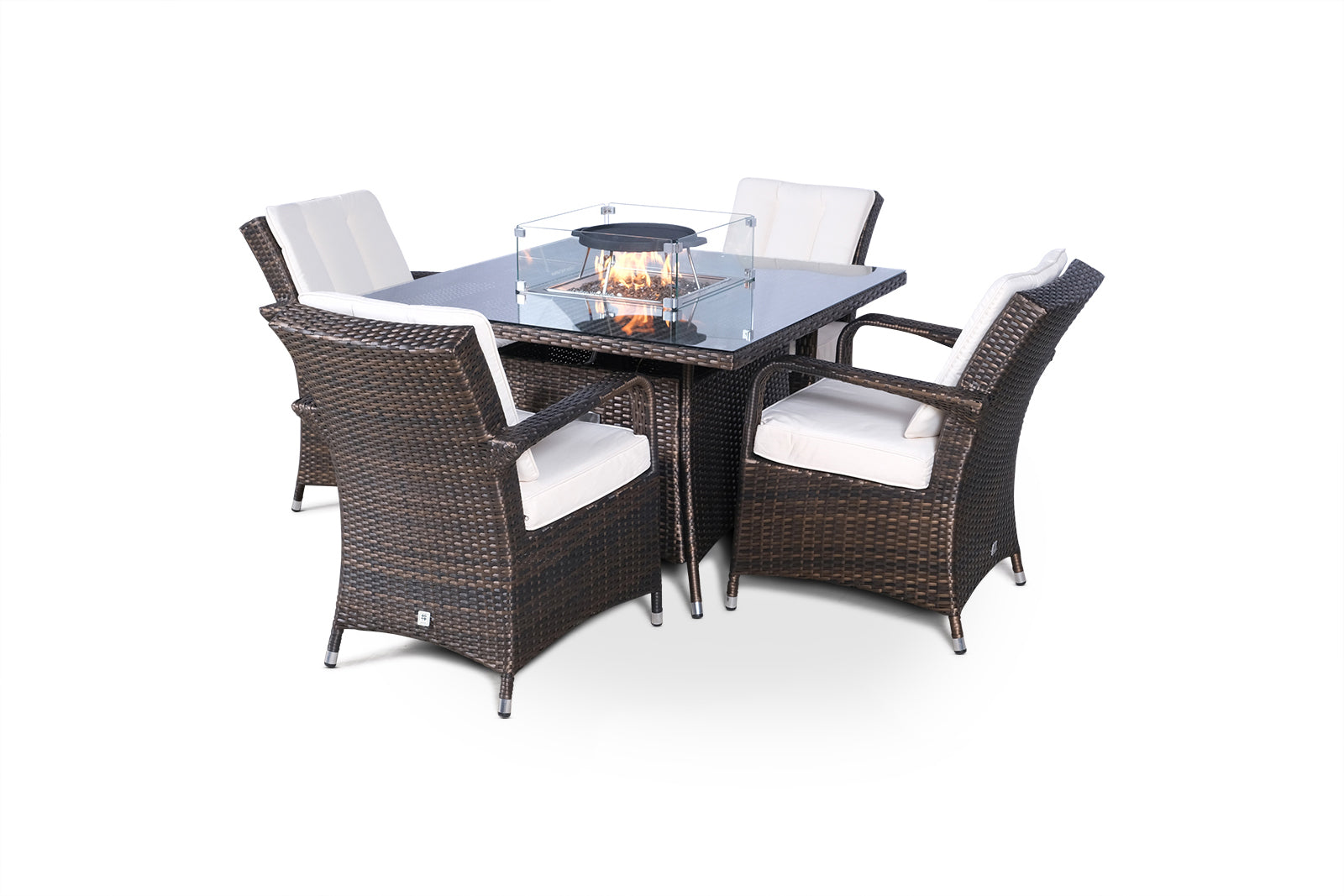 Arizona Fire Pit 4 Seater Square Rattan Dining Set - Brown