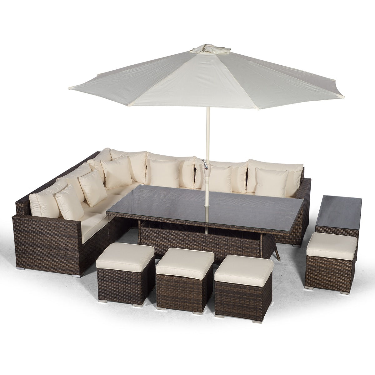 Havana - Modular 10 Seat Rattan Corner Sofa Dining Set With Stools & Coffee Table - Brown
