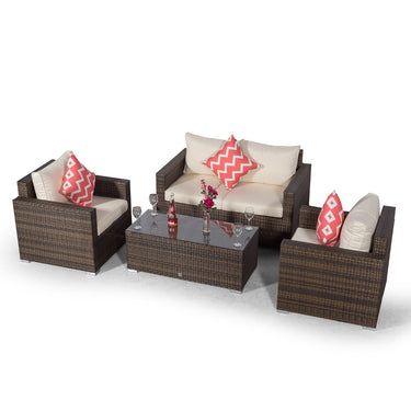 Relax in style with the Sydney 2 + 1 + 1, 4 seater outdoor conversation set. One of our more compact outdoor seating solutions, the Sydney collection features high backrests, luxuriously plump multi-density cushions and is available in a beautifully contrasting mixed brown weave, ideal for furnishing your patio, conservatory or decked garden area.