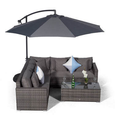 Your garden seating arrangement just wouldn't be complete without a large parasol to provide cooling shade on those extremely hot days. The Havana 'L' shaped outdoor modular sofa set comes complete with a free-standing 3m parasol with wind-up 'crank' mechanism, fitting perfectly behind the sofa to create a cooling canopy. When not in use simply wind the crank handle to easily fold the parasol away.