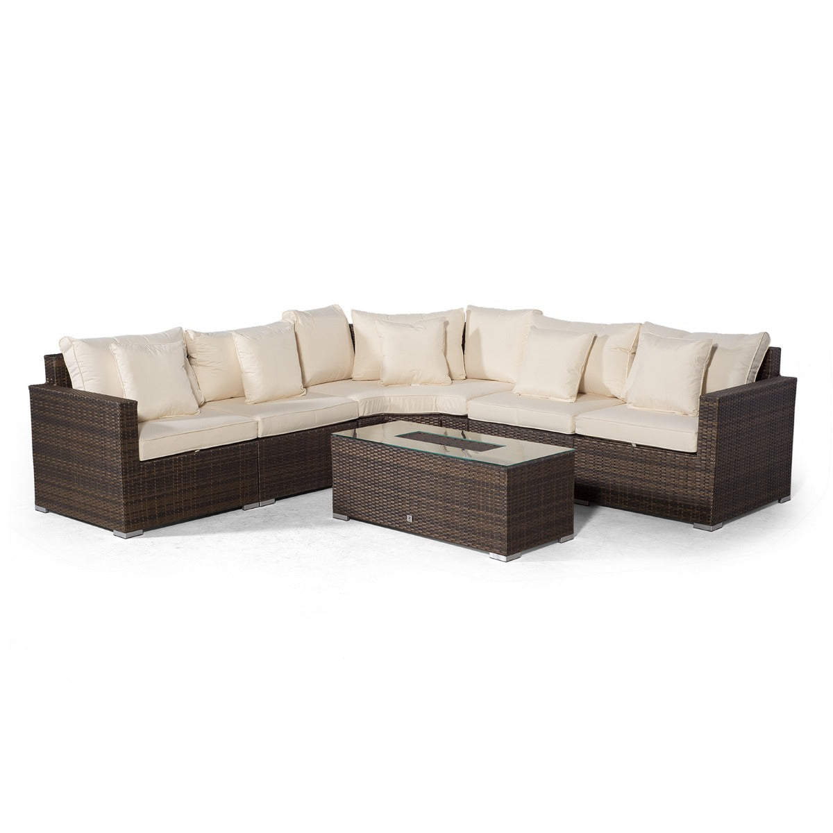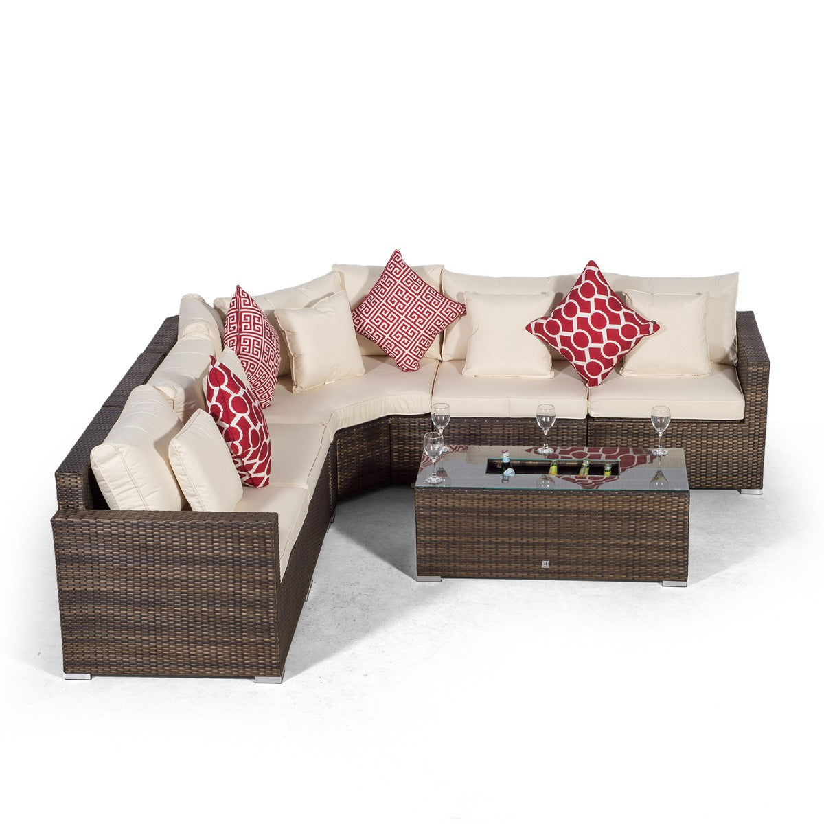 Santorini L Shape Modular 5 Seat Rattan Corner Sofa Set With Large Drinks Cooler Coffee Table - Brown
