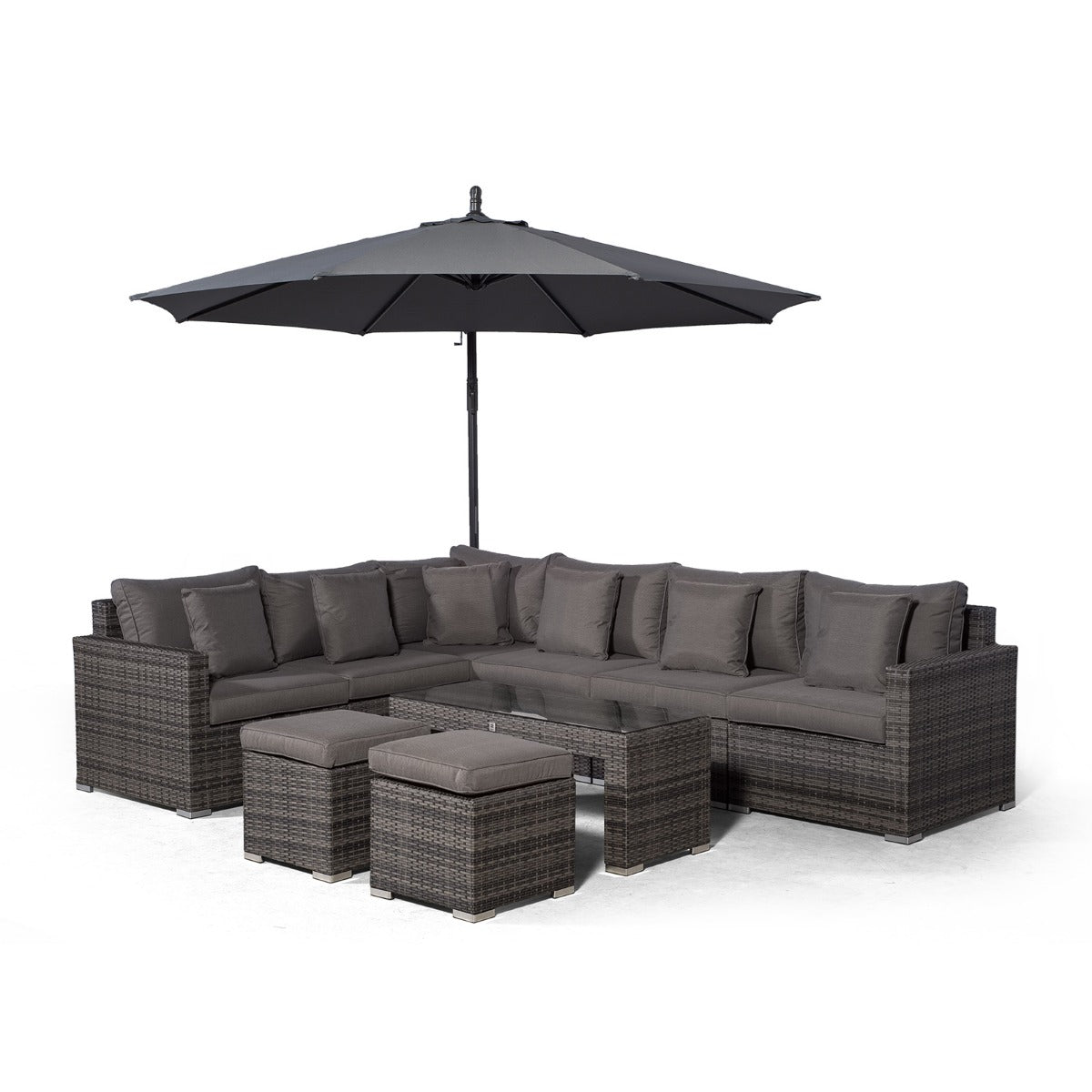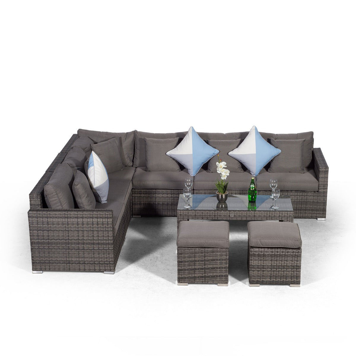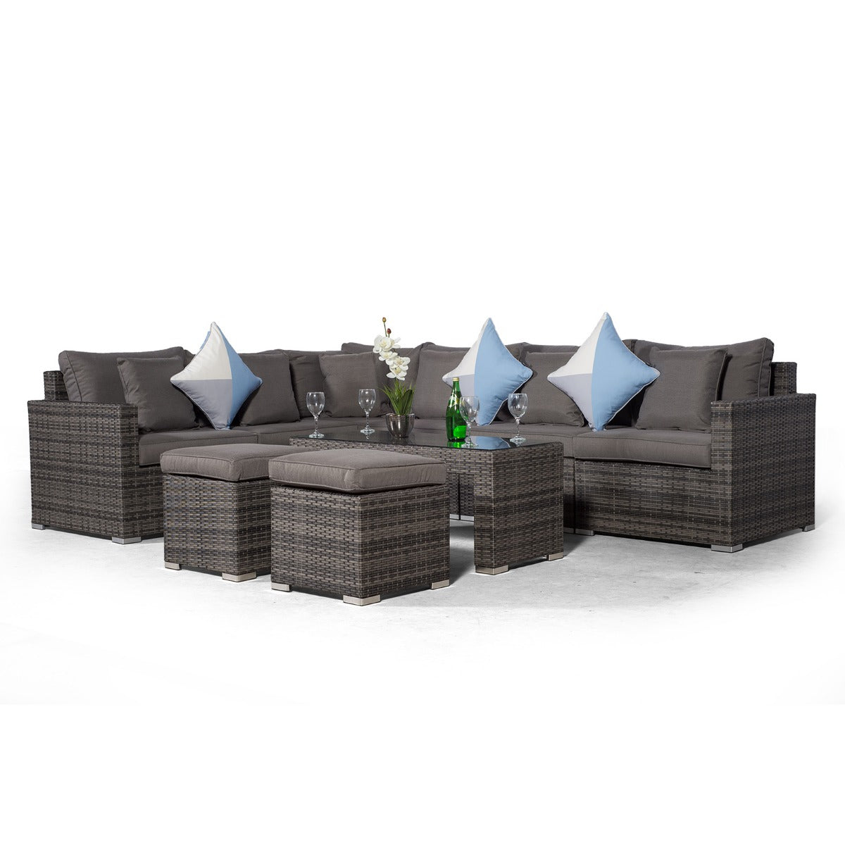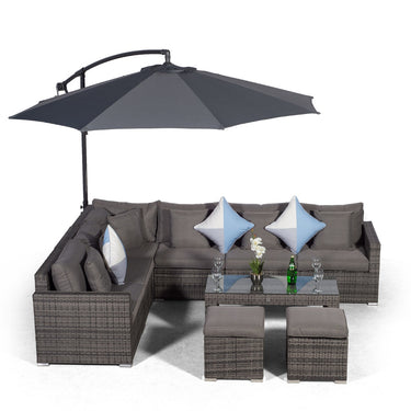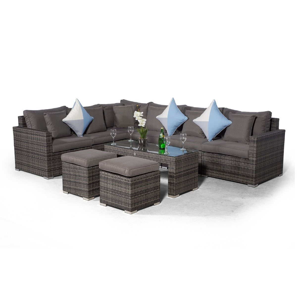 HAVANA 6 SEAT RATTAN CORNER SOFA SET WITH LARGE COFFEE TABLE & 2 STOOLS - GREY