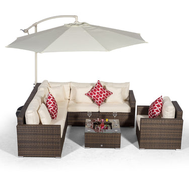 Havana L Shape Modular 6 Seat Rattan Corner Sofa Set With Armchair & Drinks Cooler Coffee Table - Brown