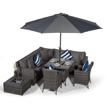 Havana - Modular 7 Seat Drinks Cooler Rattan Corner Sofa Dining Set With Padded Dining Chairs & Coffee Table - Grey