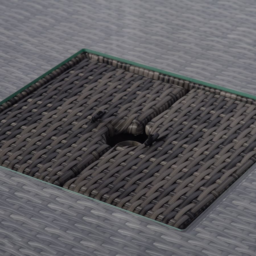One of the versatile features of this set is that the corner sofa and dining table can be used at the same time independently of each other. The dining table can function separately as a dining set using the chairs and parasol included, whilst the sofa set can function independently using the drinks cooler coffee table, providing the ideal setting for casual drinks and snacks.