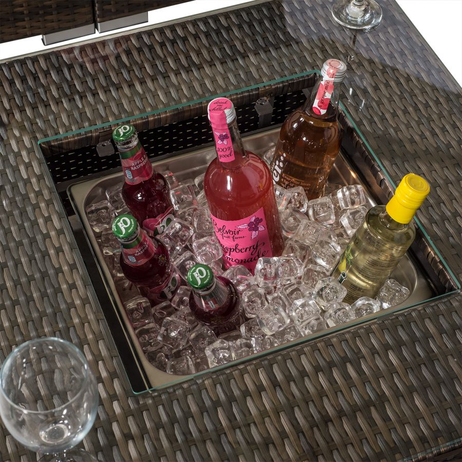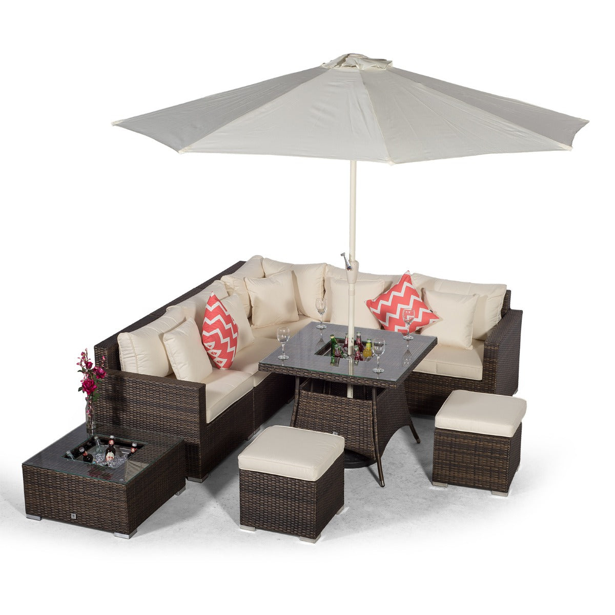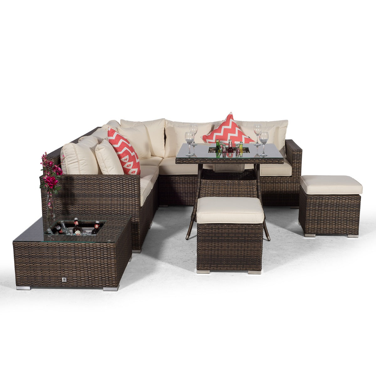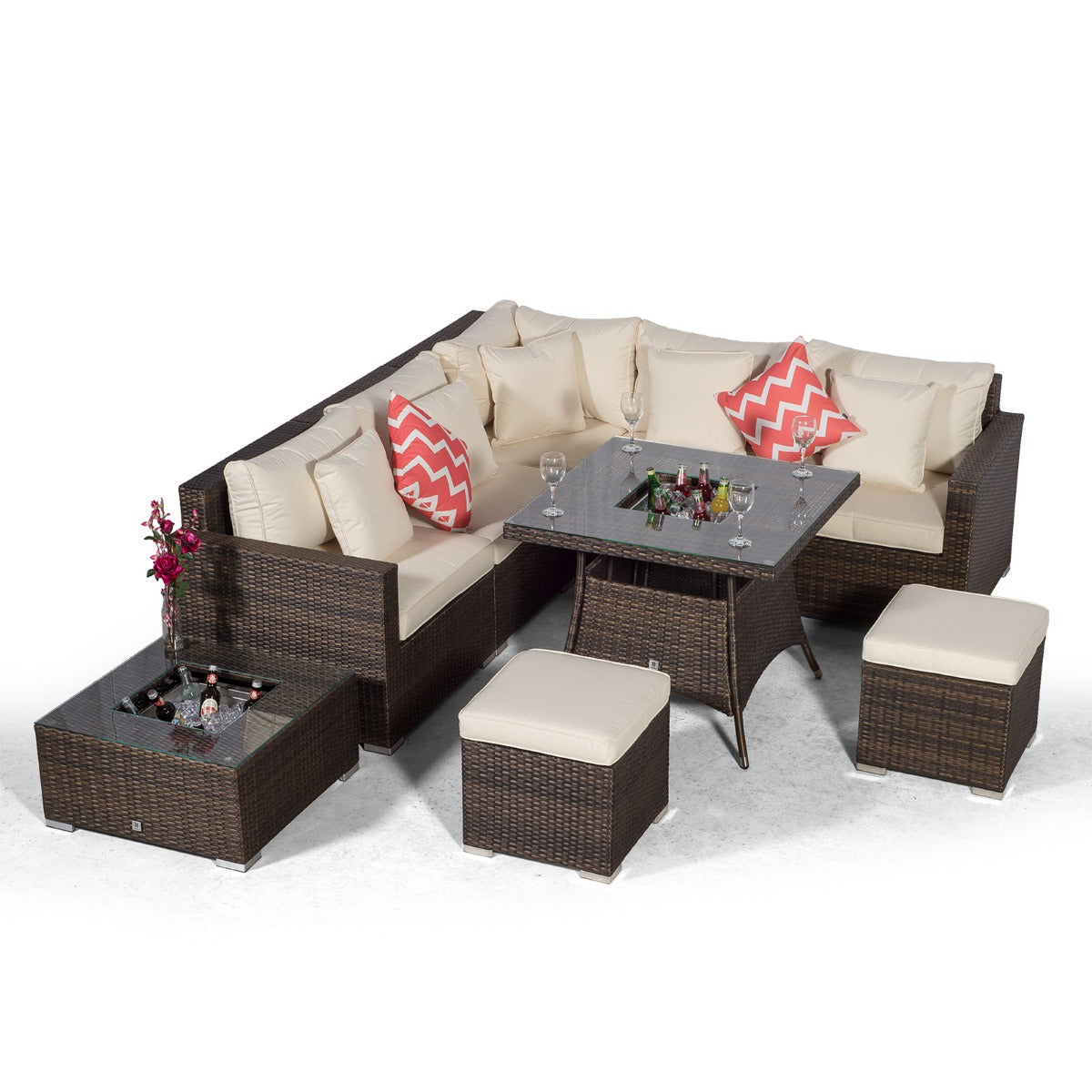 Havana - Modular 7 Seat Drinks Cooler Rattan Corner Sofa Dining Set with Stools & Coffee Table - Brown