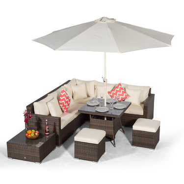 HAVANA - 7 SEAT RATTAN CORNER SOFA DINING SET WITH STOOLS & COFFEE TABLE - BROWN