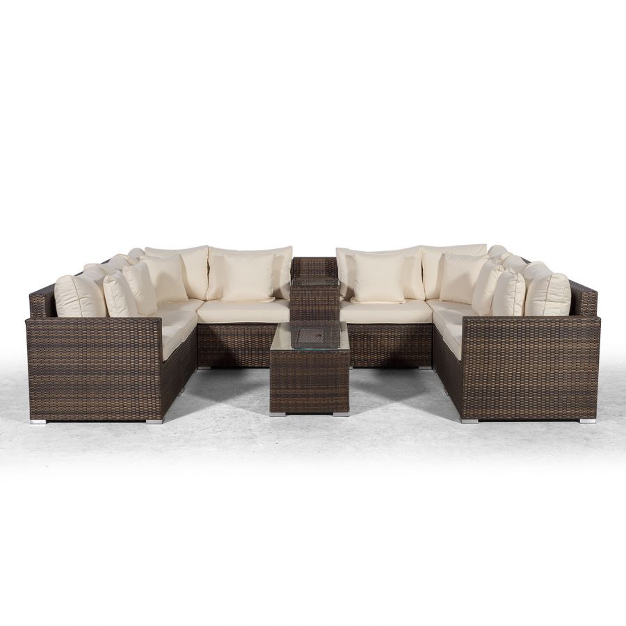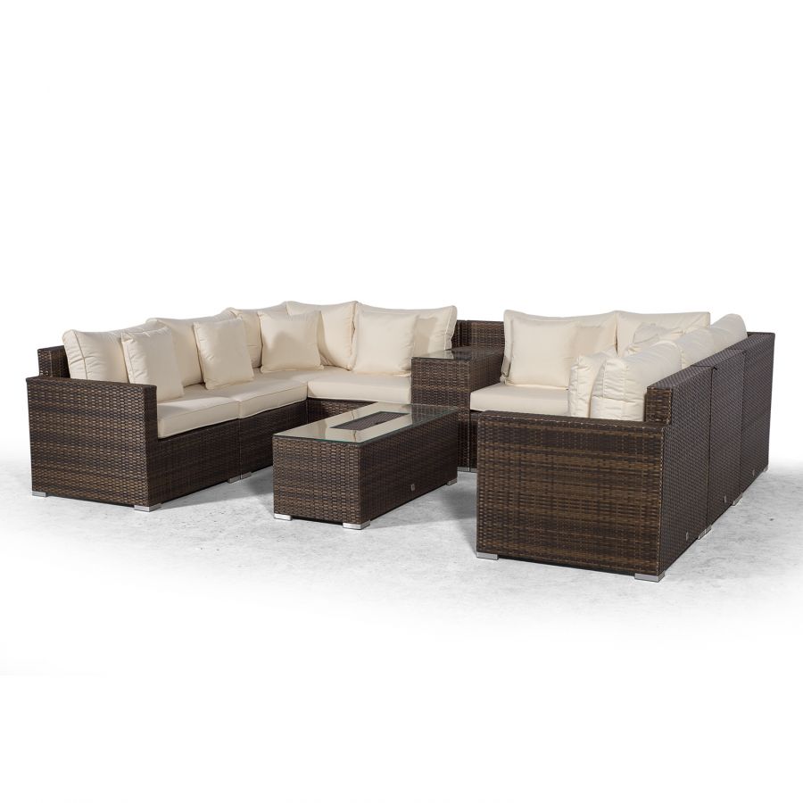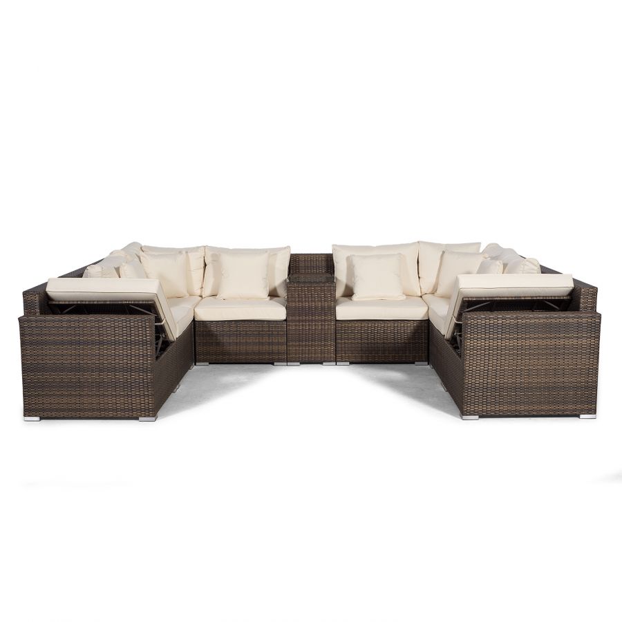 Havana U Shape Modular 8 Seat Rattan Sofa Set With Armrest Drinks Cooler & Drinks Cooler Coffee Table - Brown
