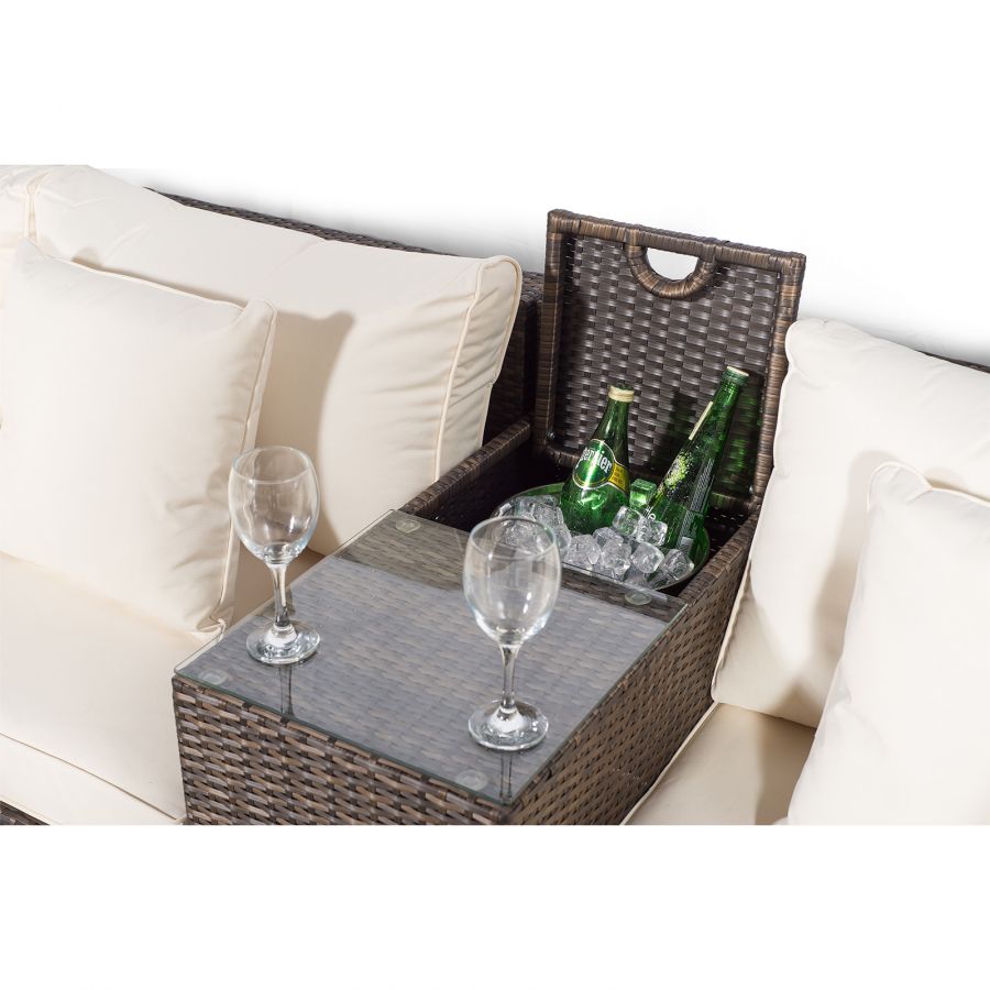 HAVANA 8 SEAT RATTAN SOFA SET WITH ARMREST DRINKS COOLER & DRINKS COOLER COFFEE TABLE - BROWN