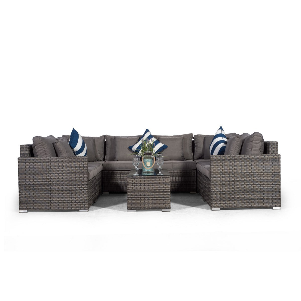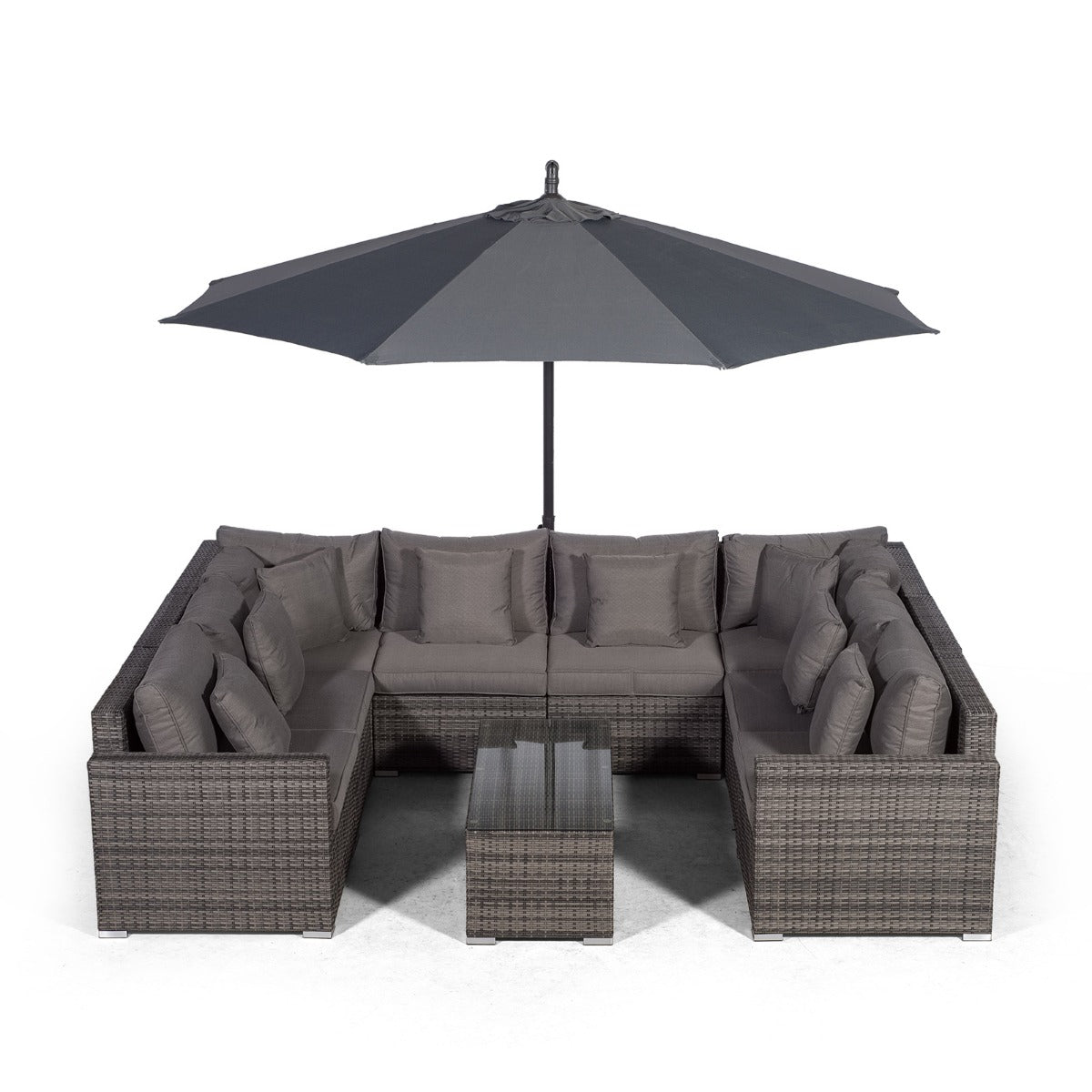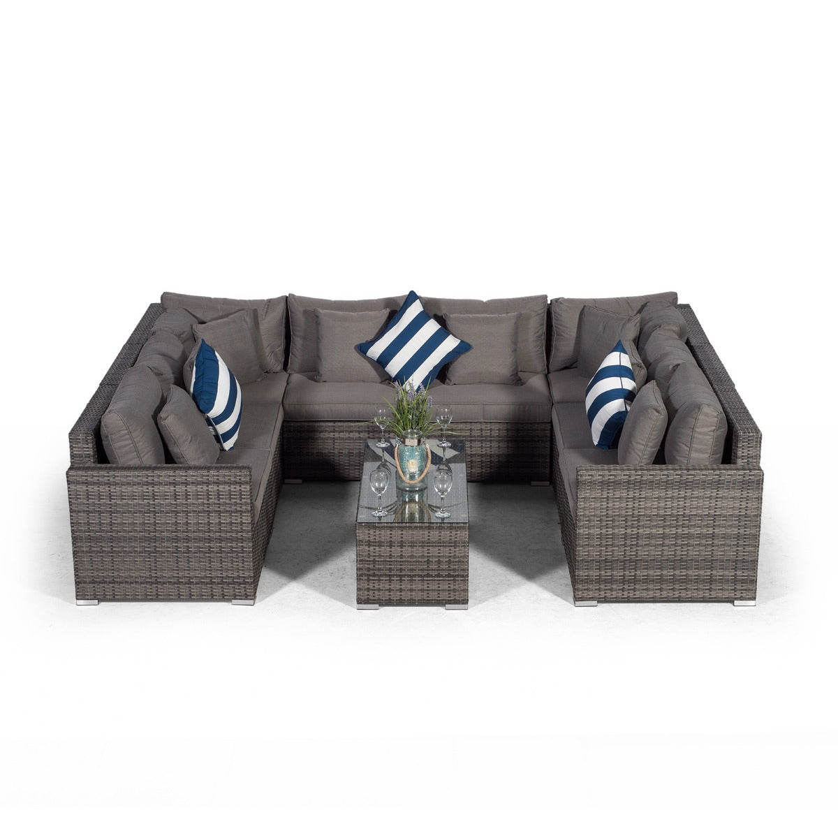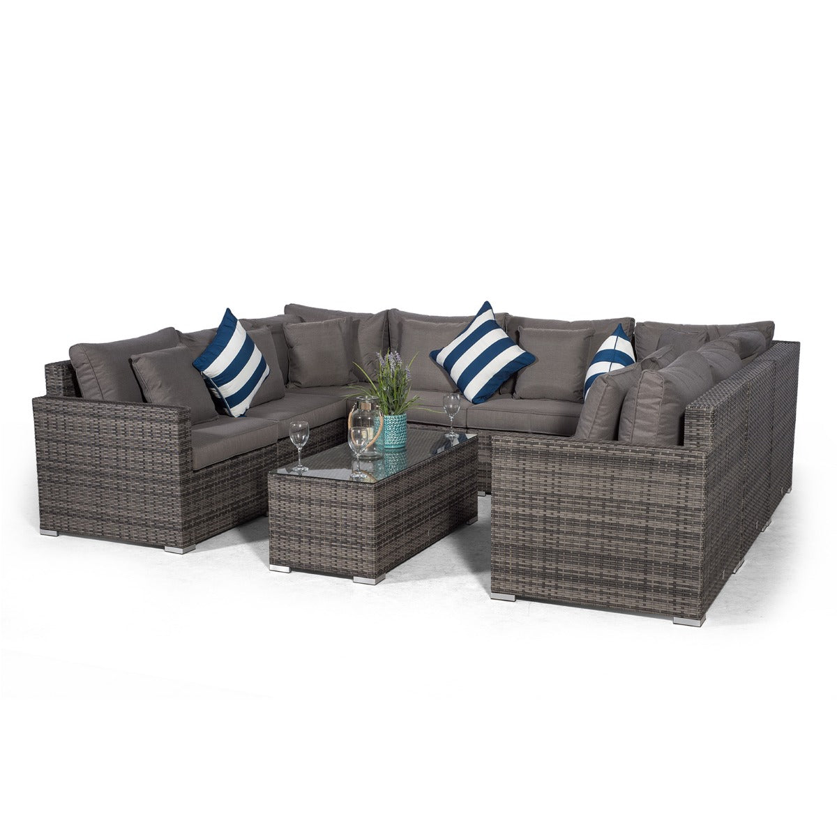 Havana U Shape Modular 8 Seat Rattan Sofa Set With Large Coffee Table - Grey