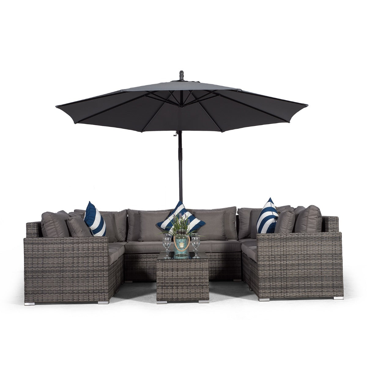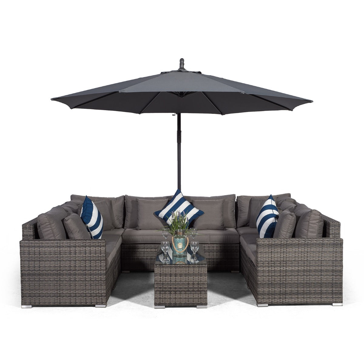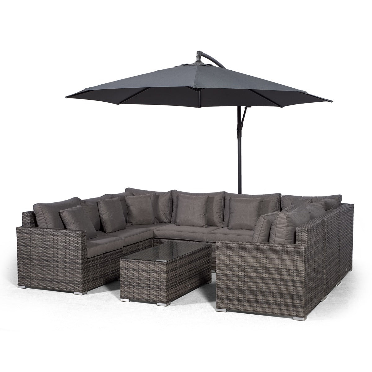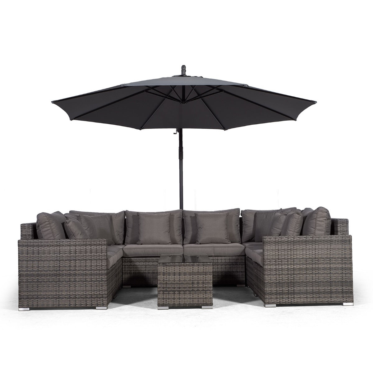 Havana U Shape Modular 8 Seat Rattan Sofa Set With Large Coffee Table - Grey
