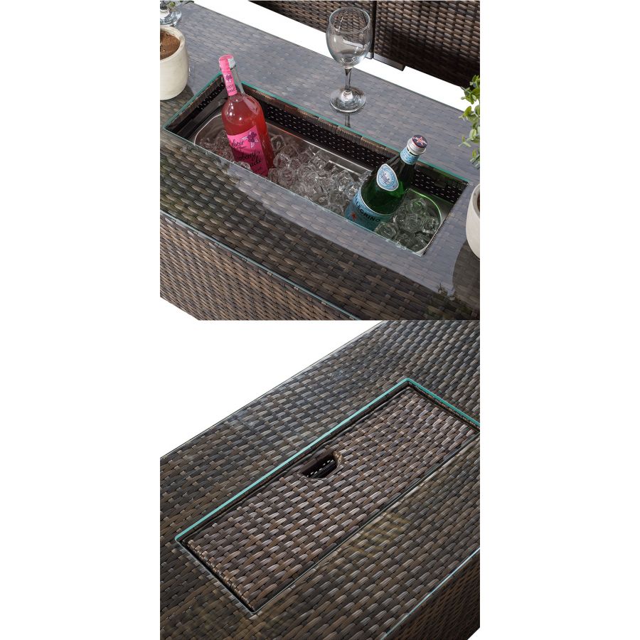 Havana - Modular 10 Seat Drinks Cooler Rattan Corner Sofa Dining Set With Stools & Coffee Table - Brown