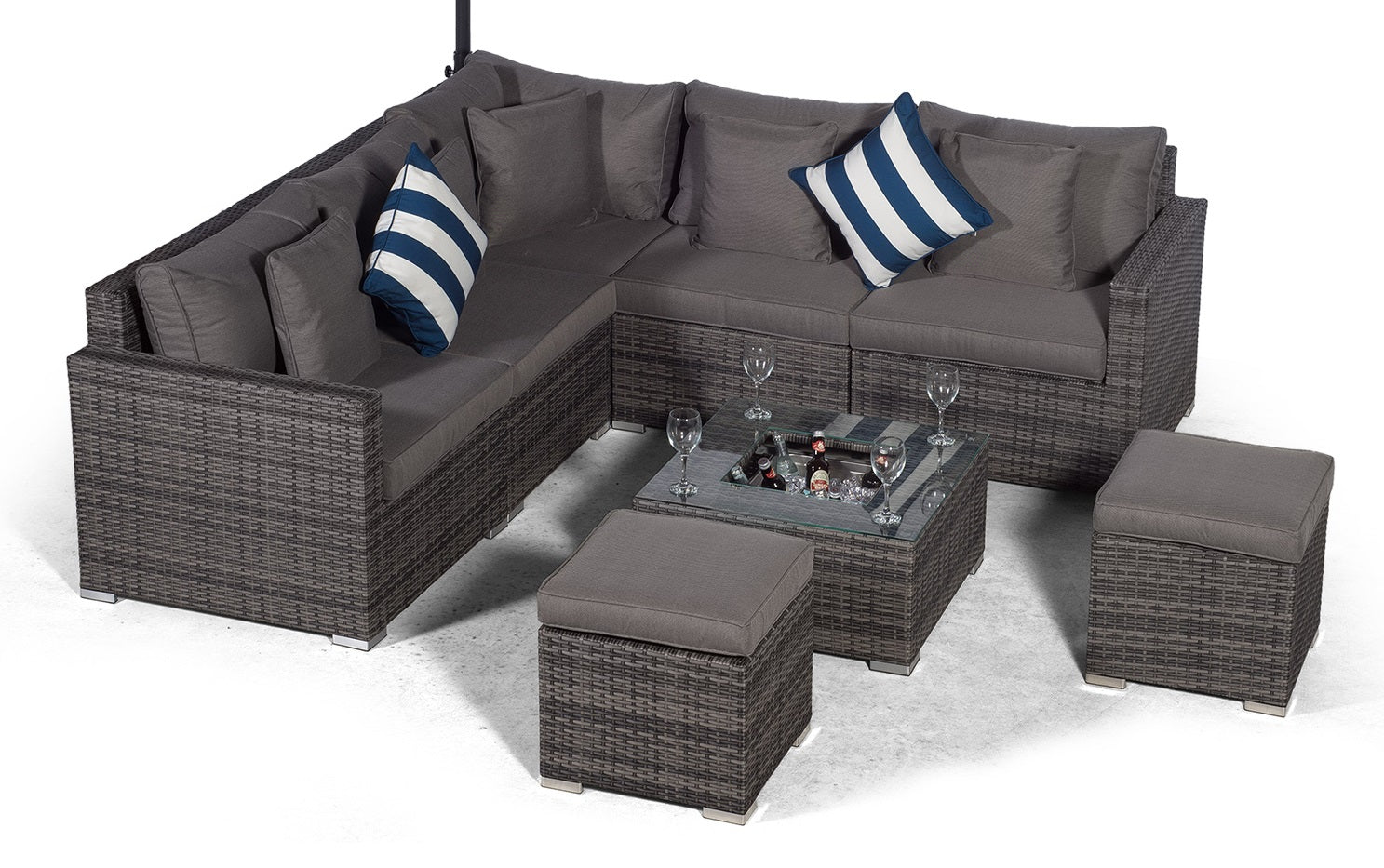 Havana - Modular 7 Seat Drinks Cooler Rattan Corner Sofa Dining Set with Stools & Coffee Table - Grey