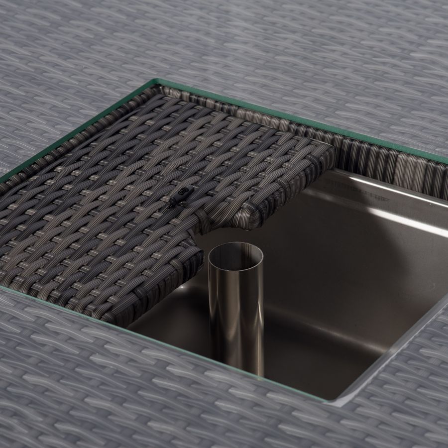 The Havana 7 seater outdoor corner sofa dining set with drinks coolers is the ideal 2 in 1solution for outdoor lounging and casual dining. Consisting of 5 spacious modular seats, a 90 x 90cm drinks cooler dining table, 2 stools and a drinks cooler coffee table, the Havana sofa dining set is available in a stunning mixed grey rattan weave.