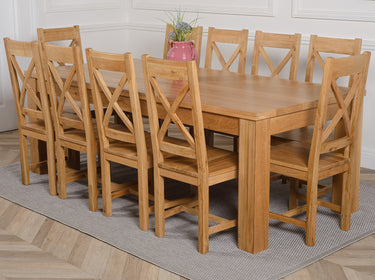 Dakota Extra Large Oak Dining Table with 10 Berkeley Oak Chairs
