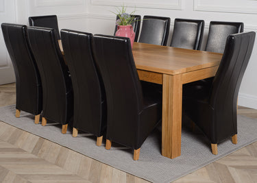 Dakota Extra Large Oak Dining Table with 10 Lola Black Leather Chairs