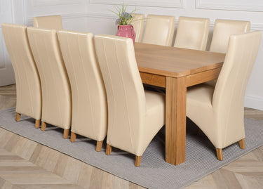 Dakota Extra Large Oak Dining Table with 10 Lola Ivory Leather Chairs