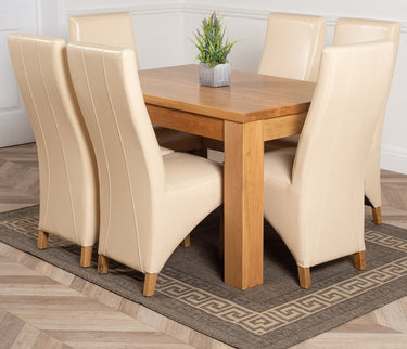 Dakota Small Oak Dining Table with 6 Lola Ivory Leather Chairs