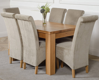 DAKOTA 127CM SOLID OAK DINING TABLE & 6 MONTANA FABRIC CHAIRS