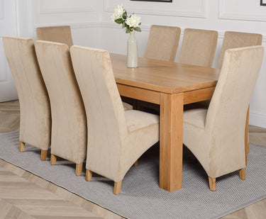 Dakota Large Oak Dining Table with 8 Lola Beige Fabric Chairs