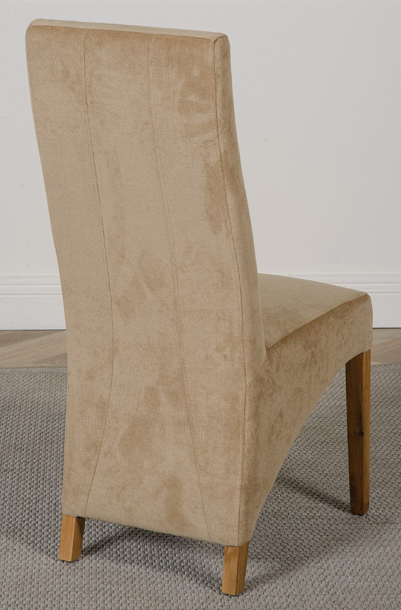 This dinner table and chairs set comes with 8 Lola fabric dining chairs upholstered in beige fabric with solid oak legs, hardwood frame and a sprung seat for exceptional comfort and durability.