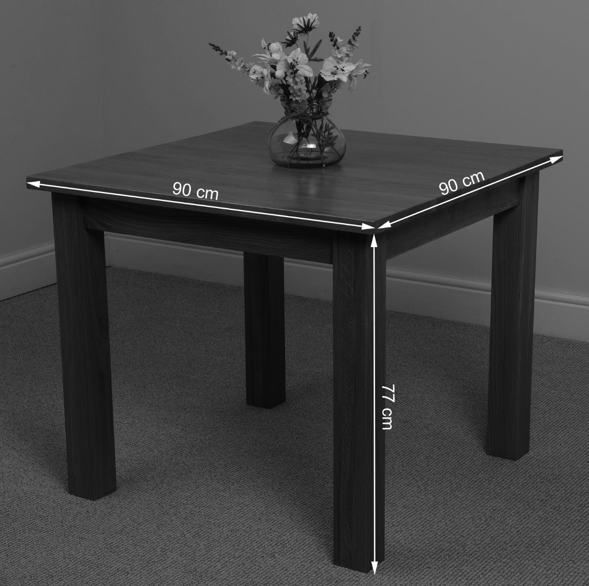 Ideal as a comfortable 4 seater or cozy dining table for two, the Oslo square oak dining table measures 90 x 90cm and is 77cm high. The table top of this small wood dining table is made from full lengths of beautiful smooth solid oak timber. With a clear lacquer finish this oak table and chairs set is practical and easy to clean with a damp cloth providing solid durability even for everyday use.
