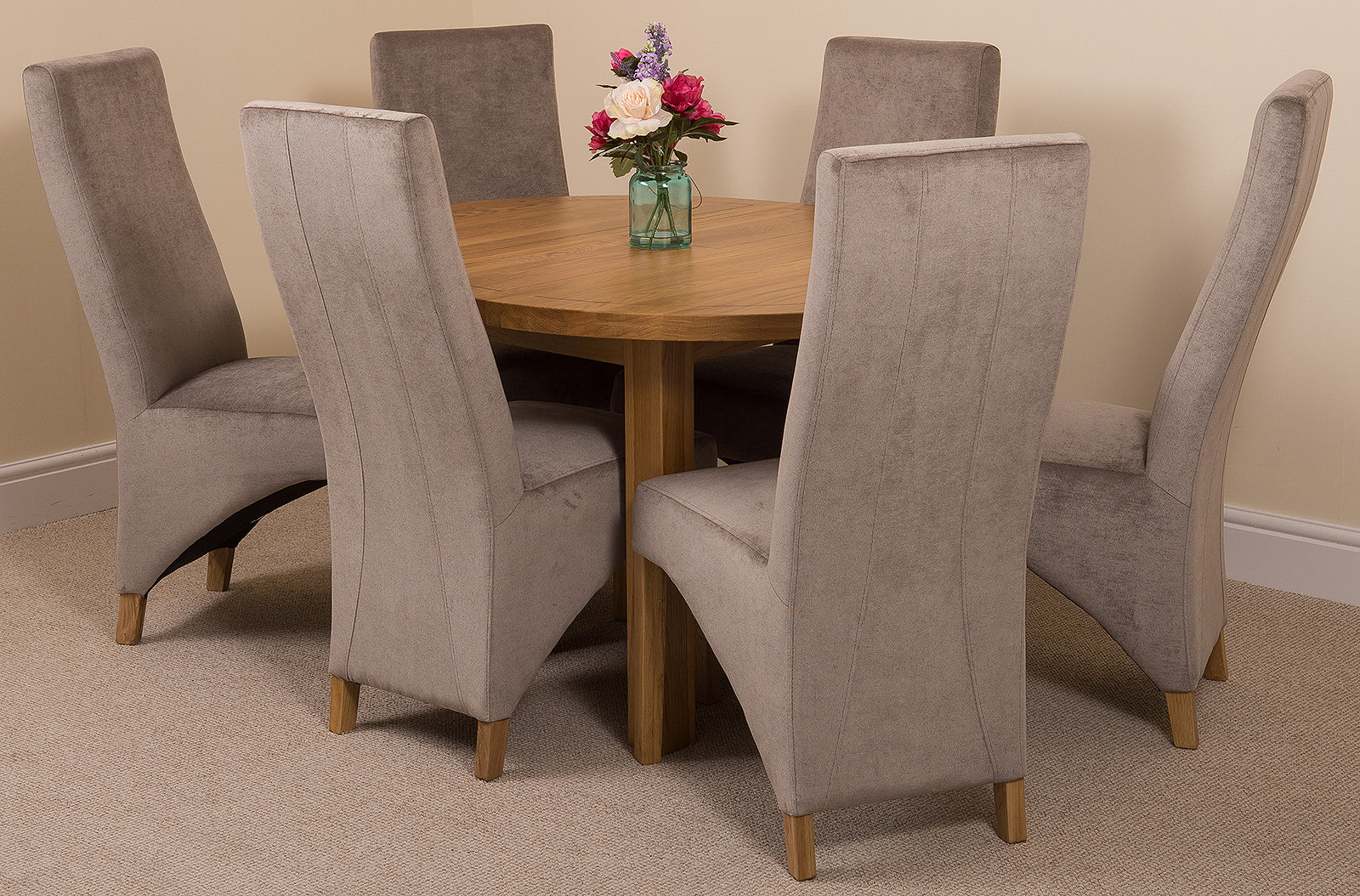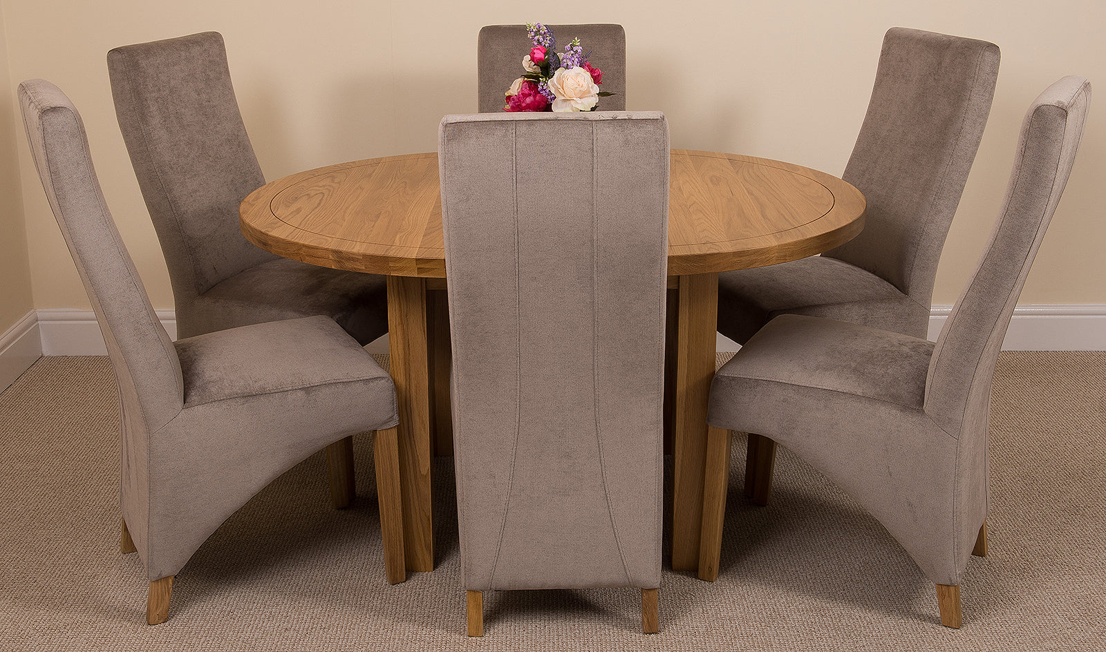 Edmonton Round Extendable Oak Dining Set with 6 Lola Grey Fabric Chairs