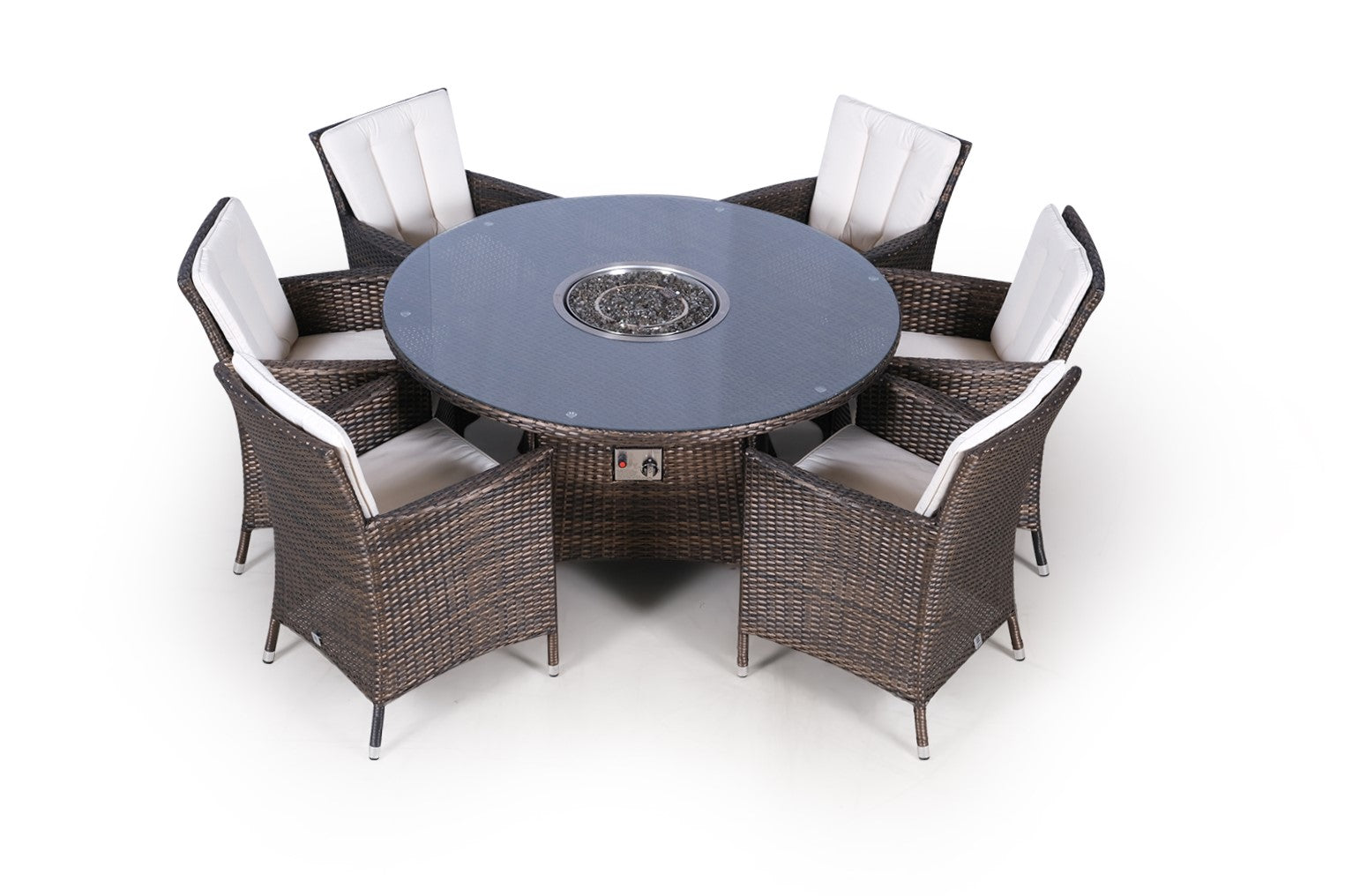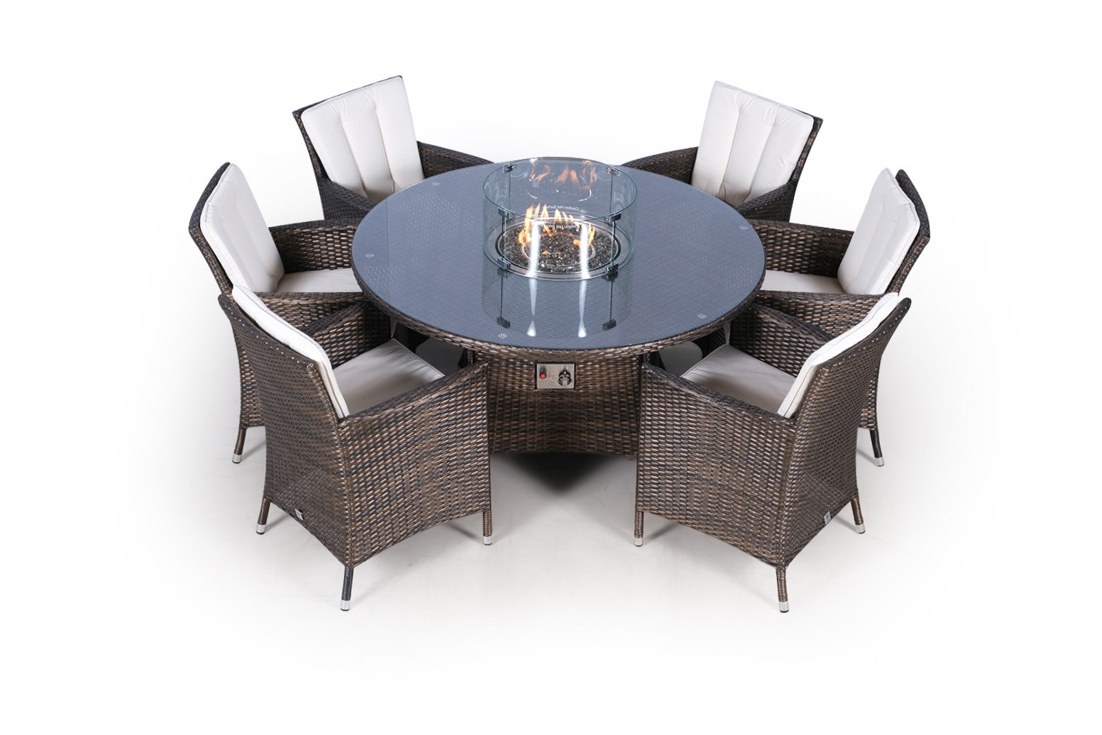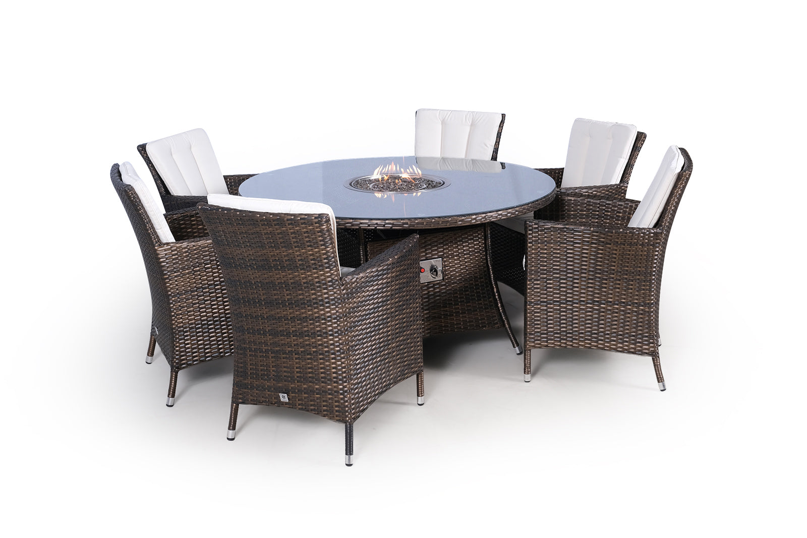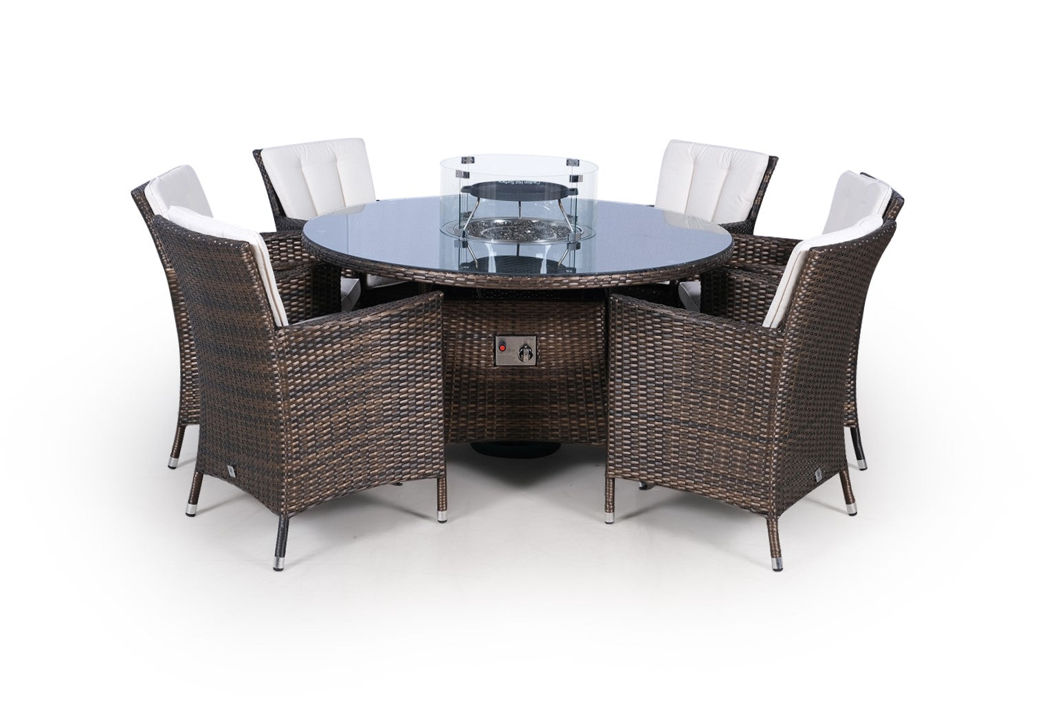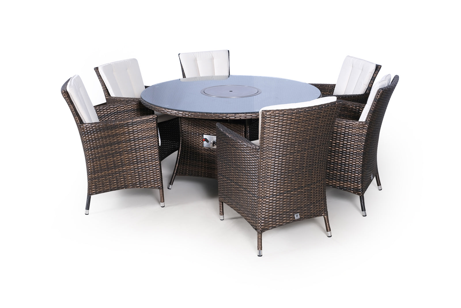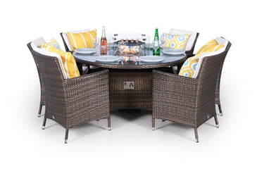 Savannah Fire Pit 6 Seater Round Rattan Dining Set - Brown