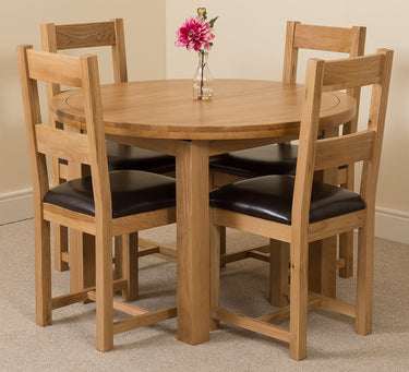 Edmonton Round Extendable Oak Dining Set with 4 Lincoln Oak Chairs