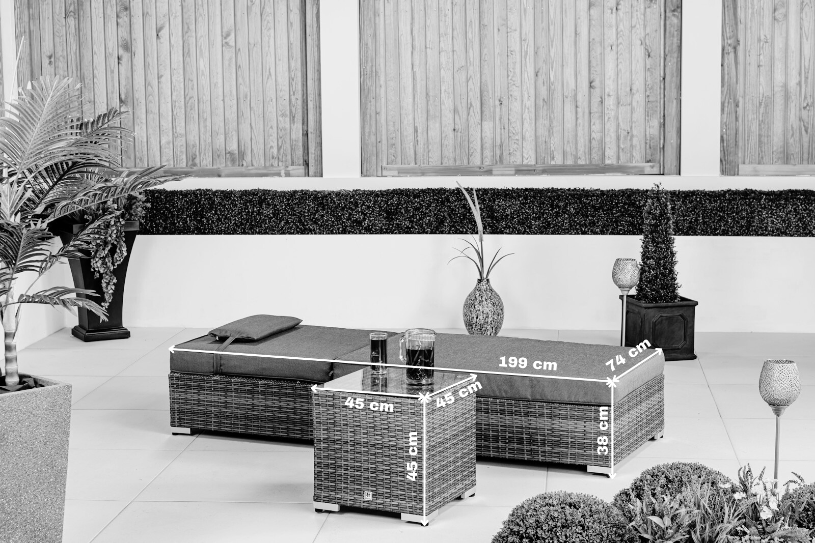 With ample dimensions of 200cm x 75cm x 50cm, this outdoor bed lounger set is designed for spacious relaxation. Combining premium materials, thoughtful design, and timeless aesthetics, the Giardino patio rattan recliner set delivers unparalleled comfort and style.