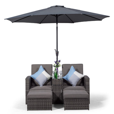 Nevada 2 Seat Armchair Sun Lounger Recliner with Stools and Parasol - Grey