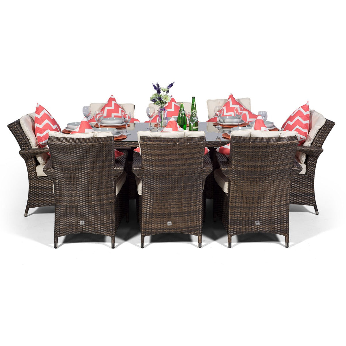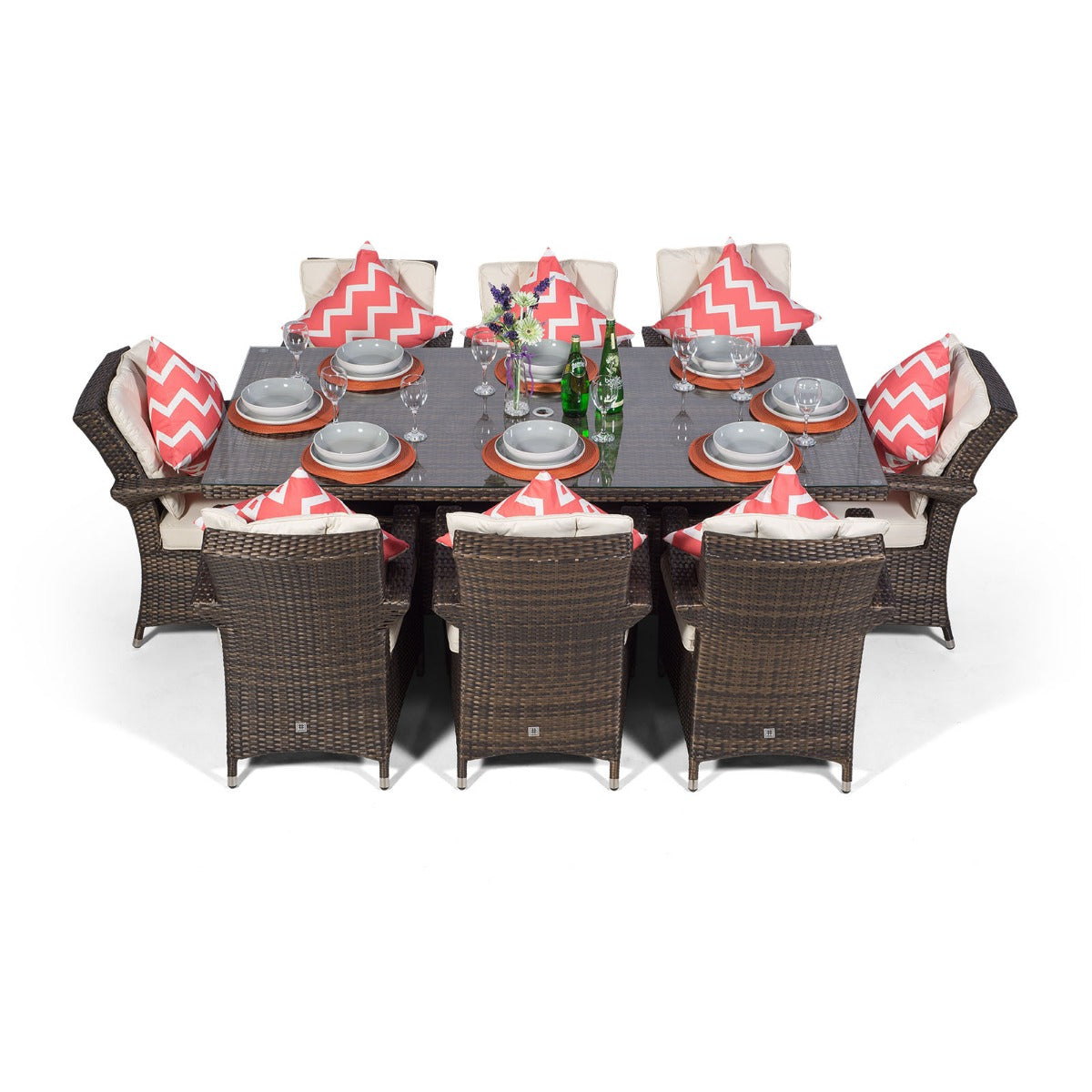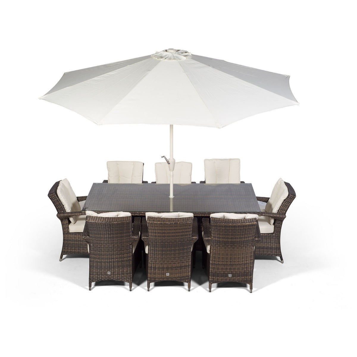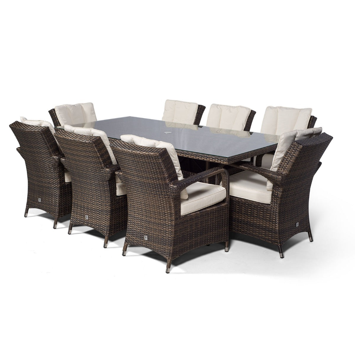 Arizona Rectangular 8 Seater Rattan Patio Dining Table & Chairs Set - Brown