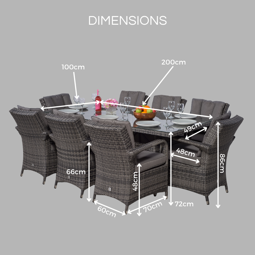 Designed to be the focal point of your outdoor living space, the Arizonas statement feature is its luxury dining armchairs with wide curved armrests and contoured high back rests, the Arizona is one of our most comfortable and stylish outdoor rattan dining sets.