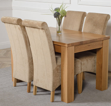 Dakota Small Oak Dining Table with 4 Montana Beige Fabric Chairs