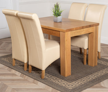 Dakota Small Oak Dining Table with 4 Montana Ivory Leather Chairs