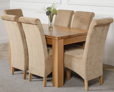 Dakota Small Oak Dining Table with 6 Montana Beige Fabric Chairs