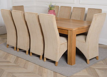 Dakota Extra Large Oak Dining Table with 10 Lola Beige Fabric Chairs
