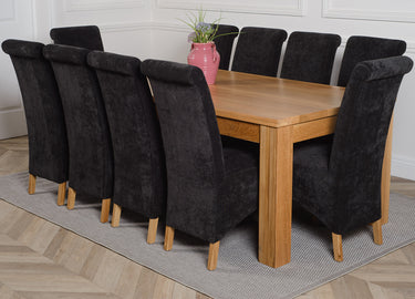 Dakota Extra Large Oak Dining Table with 10 Montana Black Fabric Chairs
