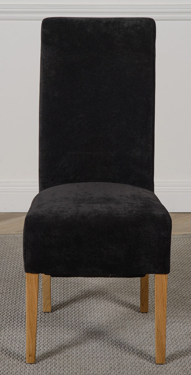 This dinner table and chairs set comes with 10 Montana dining chairs upholstered in luxurious dark grey fabric with oak legs, hardwood frames and sprung seats for exceptional comfort and durability.