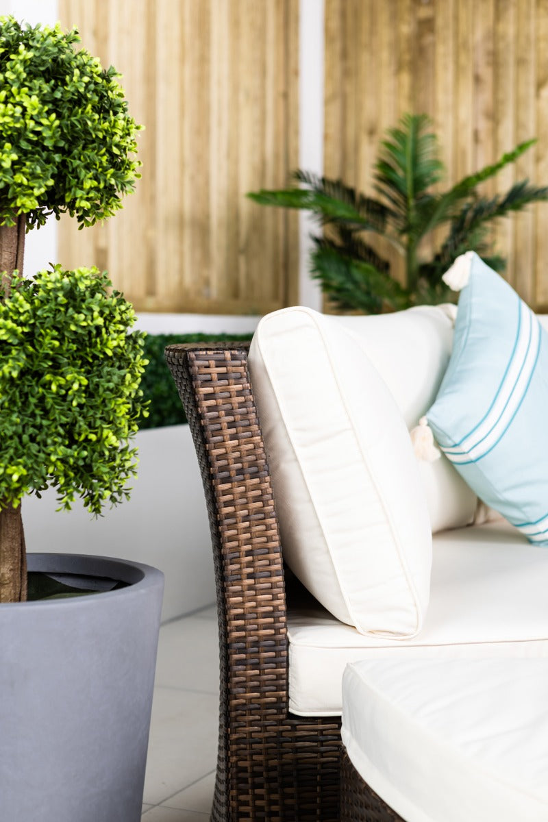 Perfect for any garden, patio, or poolside, this modern outdoor furniture is designed to elevate your outdoor experience. The timeless brown rattan design, paired with ivory cushions, offers a sophisticated yet natural look that complements any outdoor space.
