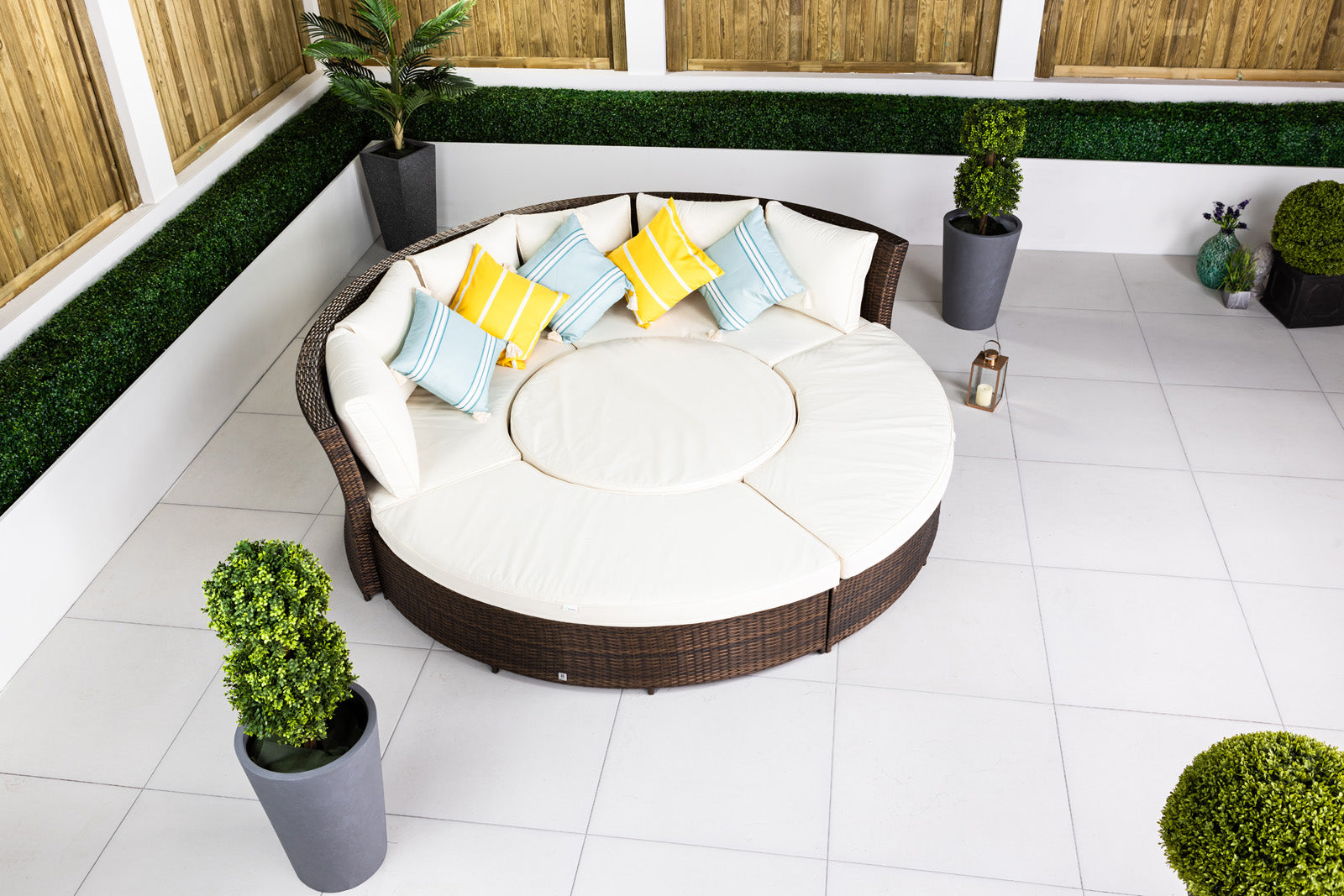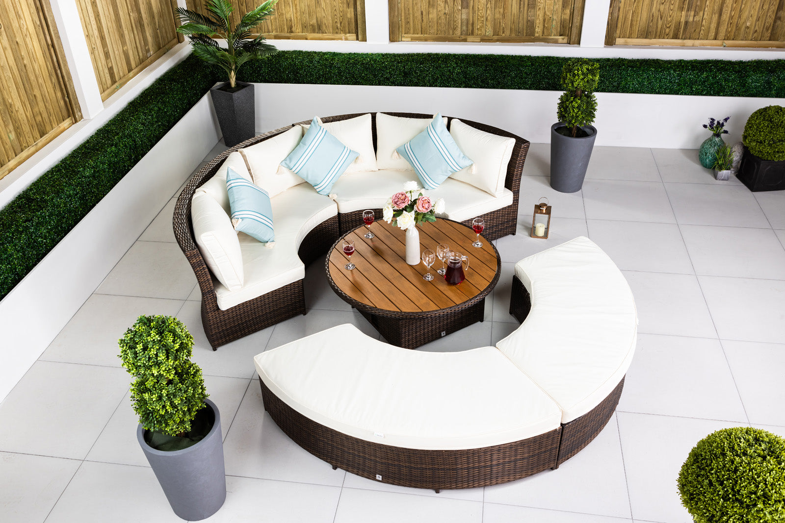 Delphi 3-in-1 Modular Round Sofa Daybed & Dining Set - Brown