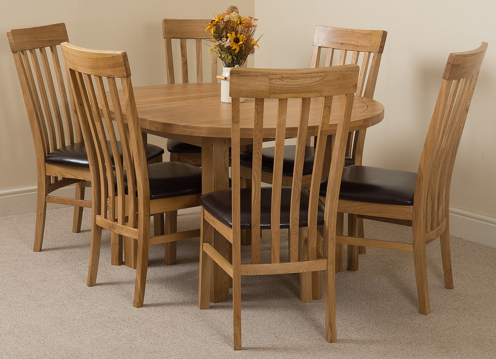 Edmonton Round Extendable Oak Dining Set with 6 Harvard Oak Chairs