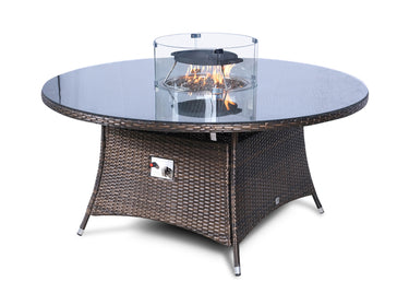 GIARDINO FIRE PIT 8 SEATER ROUND RATTAN DINING TABLE - BROWN