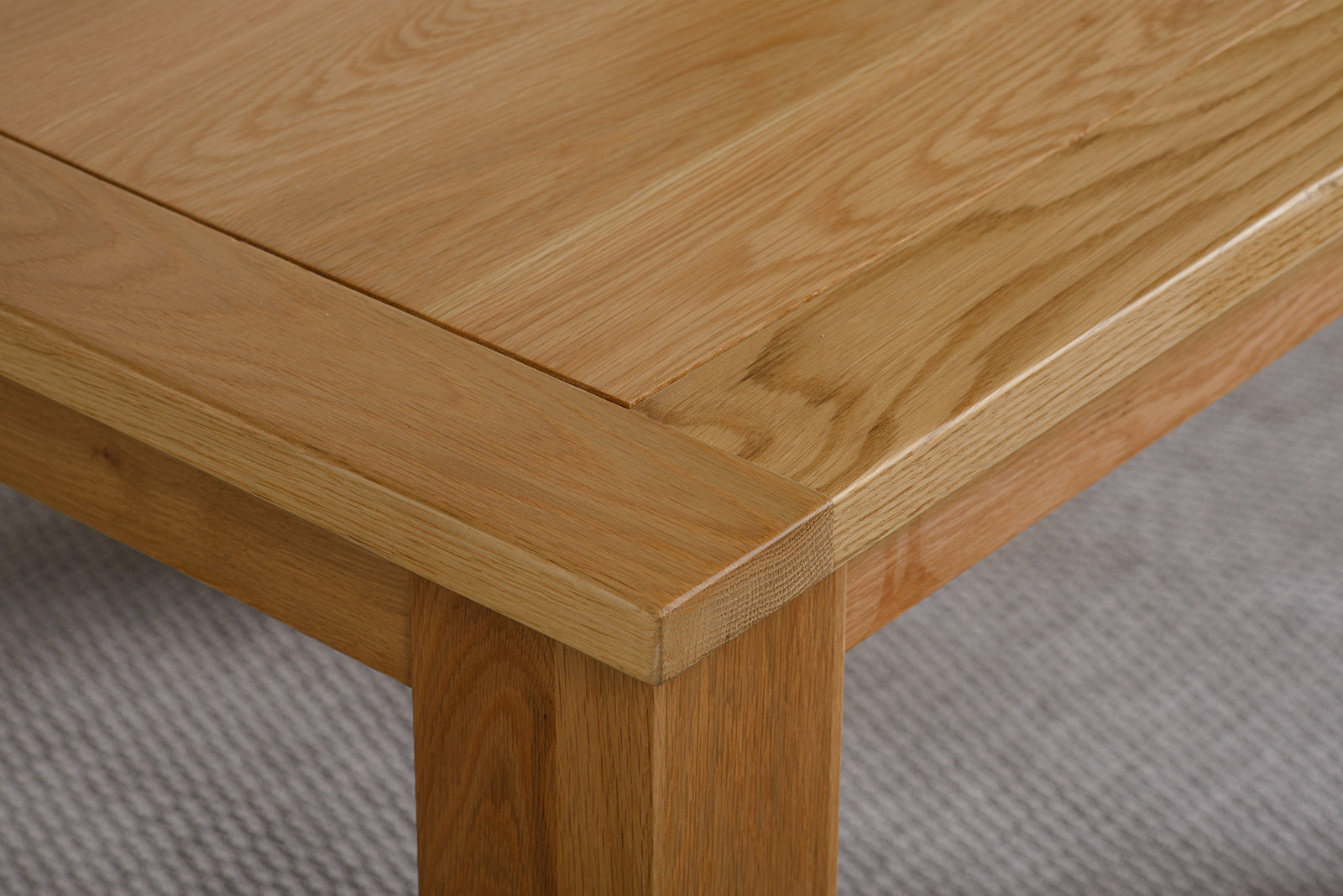 Finished in a clear non-gloss lacquer to maintain and preserve the natural oak colour, the lacquer seal also enhances the appearance of the wood grain on each perfectly crafted panel of this wooden dining table and chairs set. As any fine craftsman will tell you, the inlaid grooves on the oak table top prevent bowing by accommodating any natural expansion in the solid oak wood. Its a sign of quality construction, so dont settle for anything less.