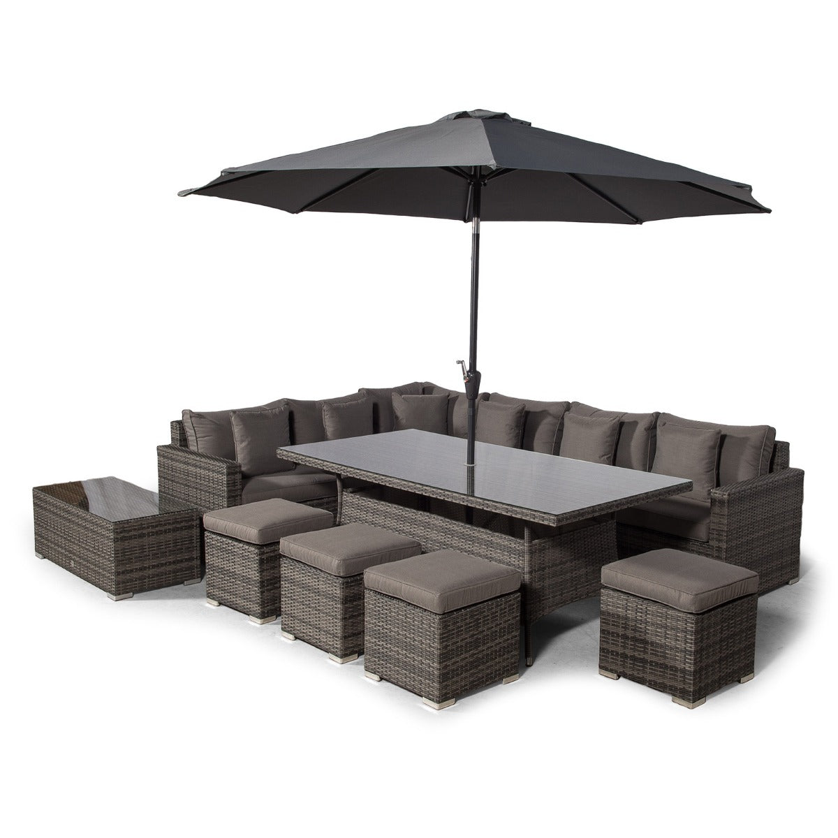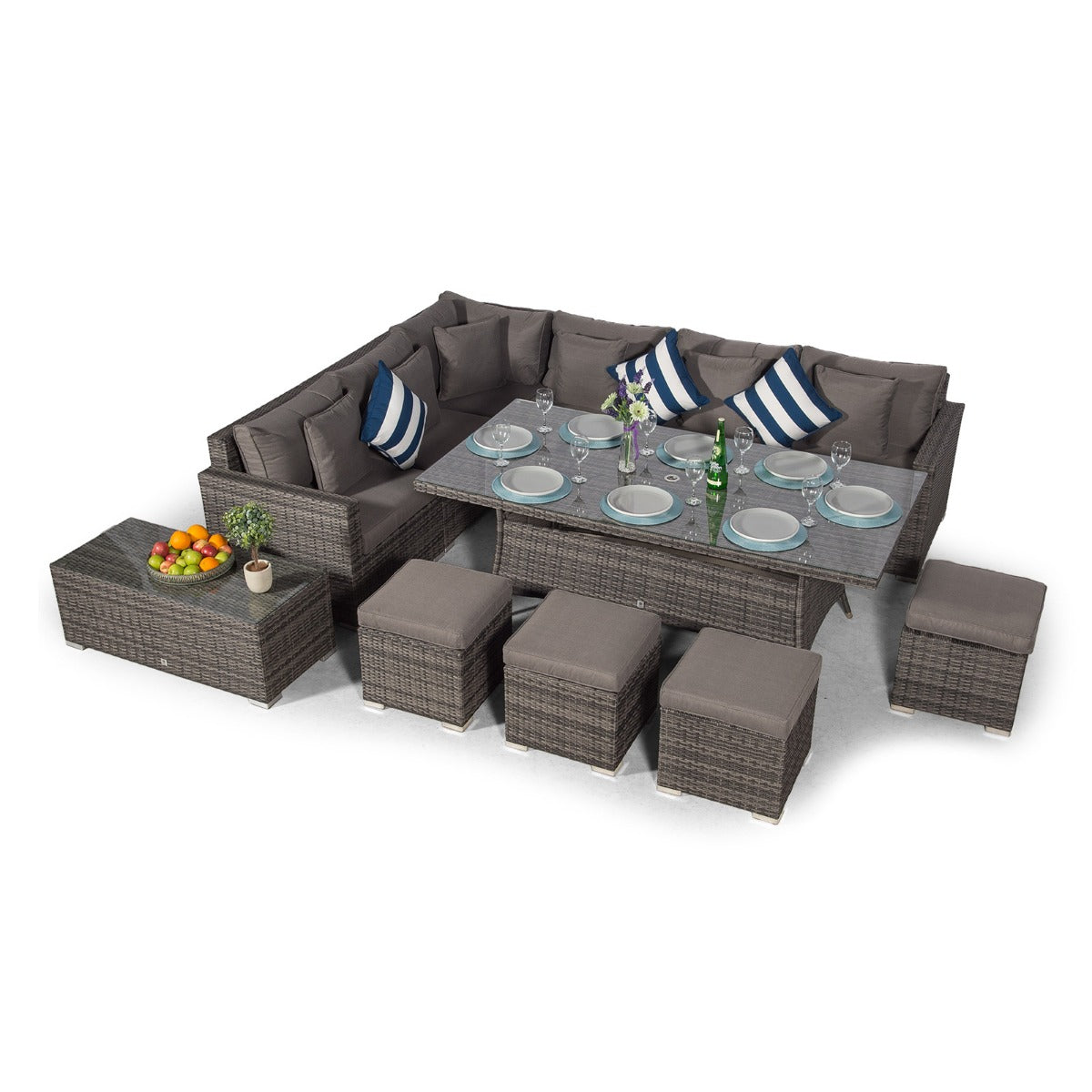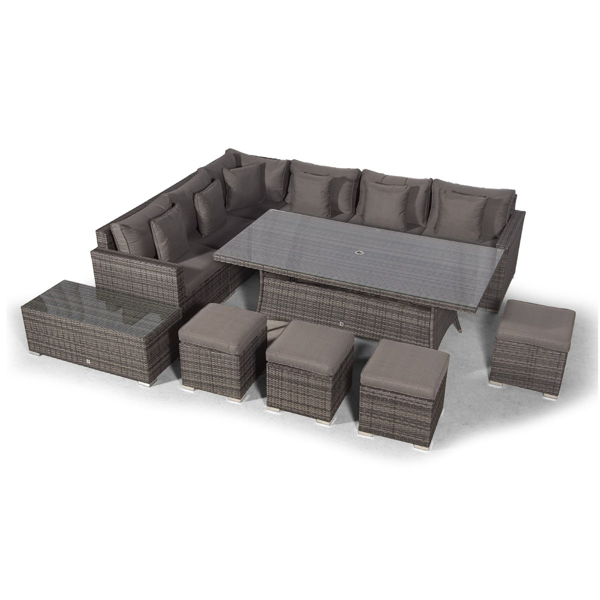 Havana - Modular 10 Seat Rattan Corner Sofa Dining Set With Stools & Coffee Table - Grey