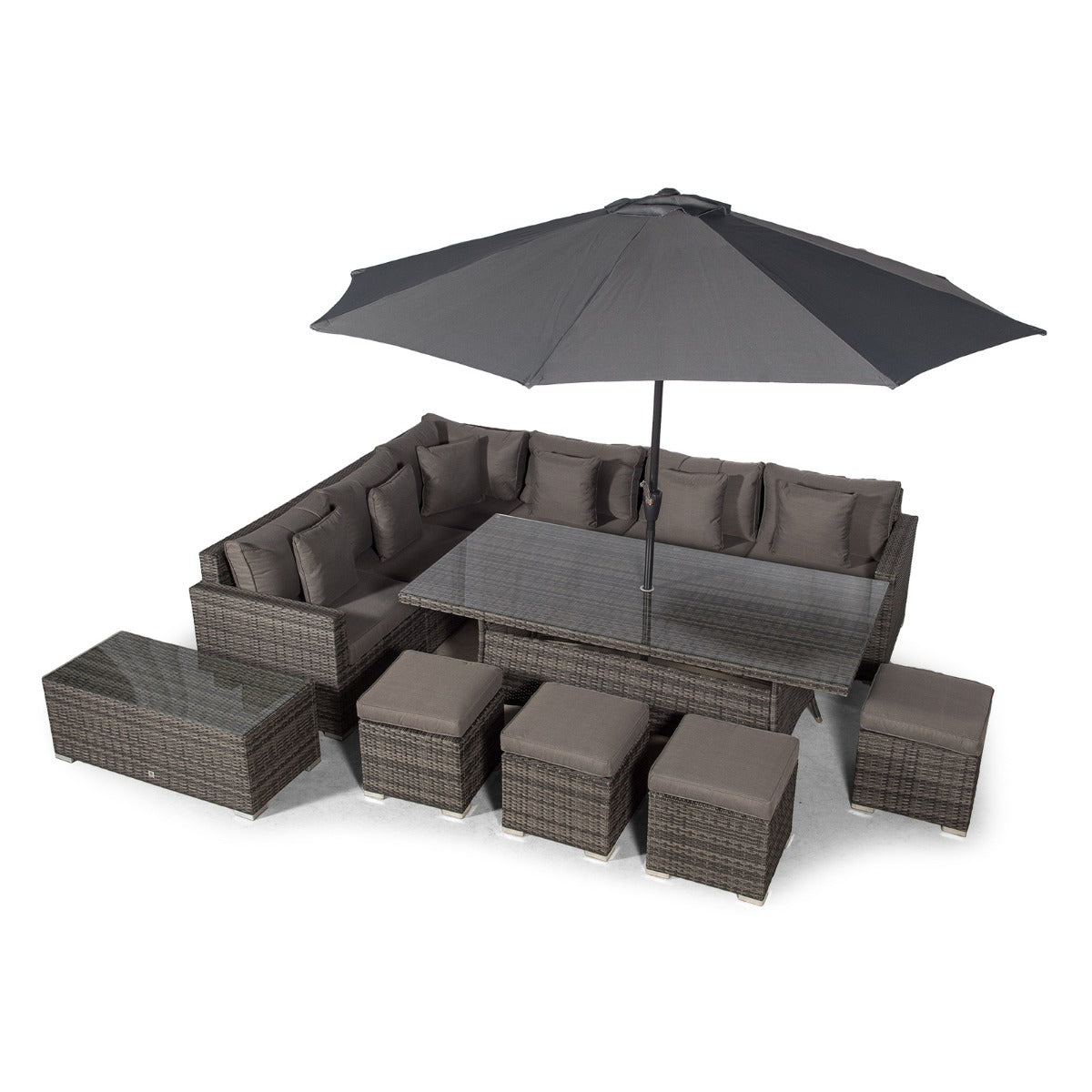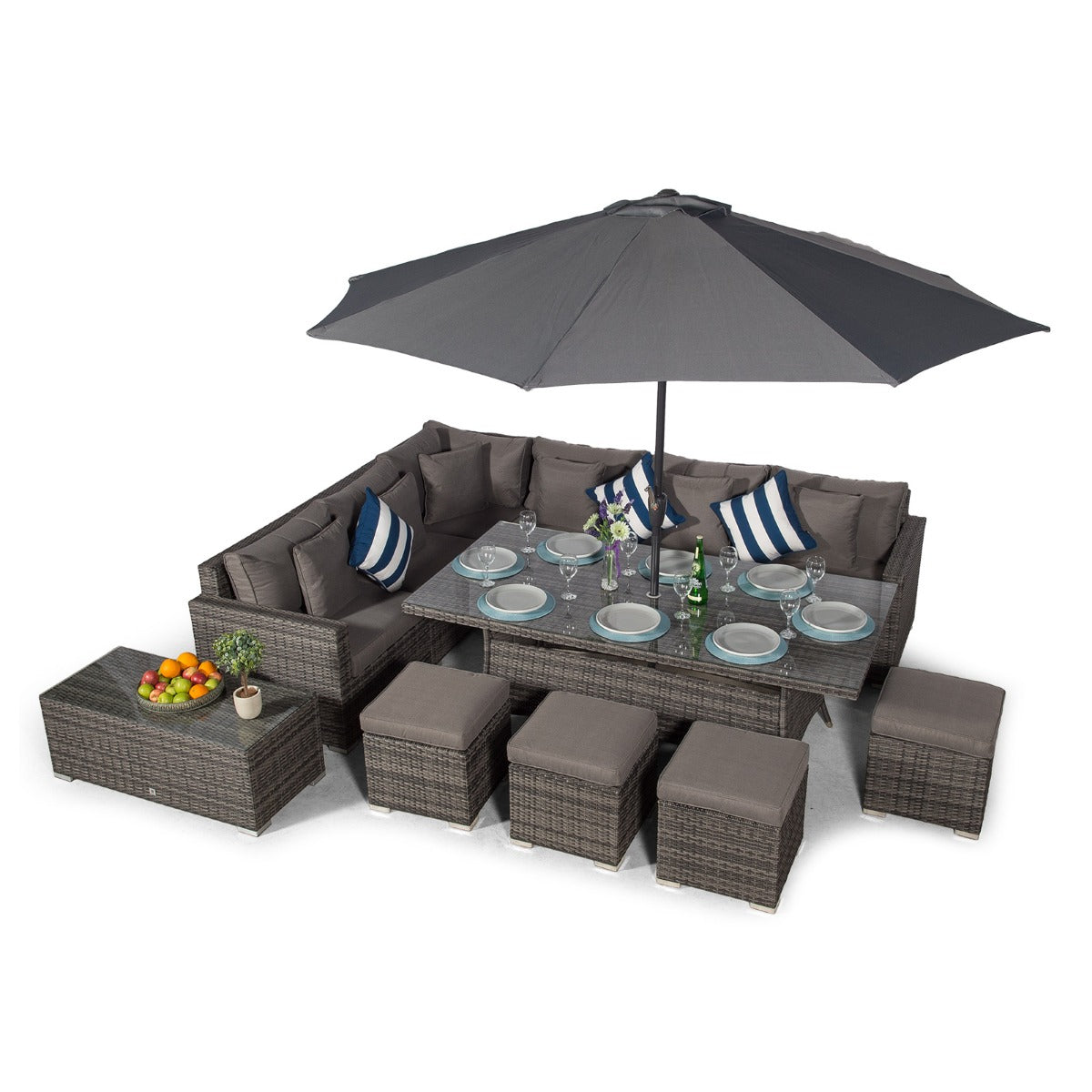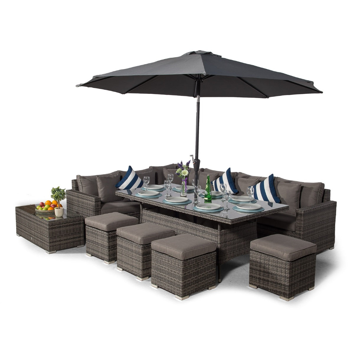 Havana - Modular 10 Seat Rattan Corner Sofa Dining Set With Stools & Coffee Table - Grey