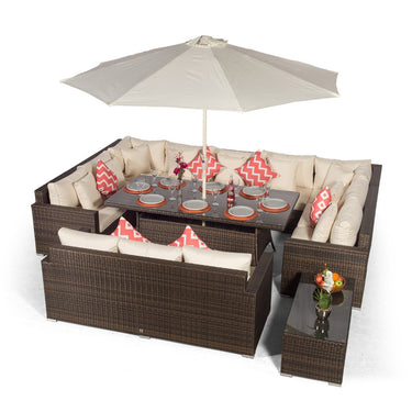 HAVANA - U SHAPED 12 SEAT RATTAN CONVERSATION DINING SET WITH 3 SEATER SOFA & COFFEE TABLE - BROWN