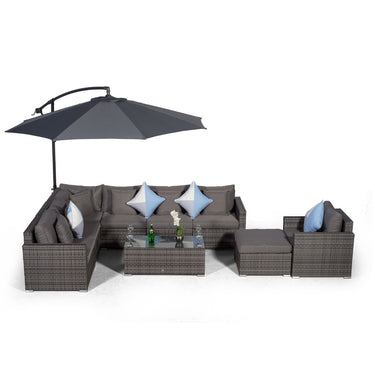 HAVANA 7 SEAT RATTAN CORNER SOFA & ARMCHAIR SET WITH COFFEE TABLE & OTTOMAN - GREY