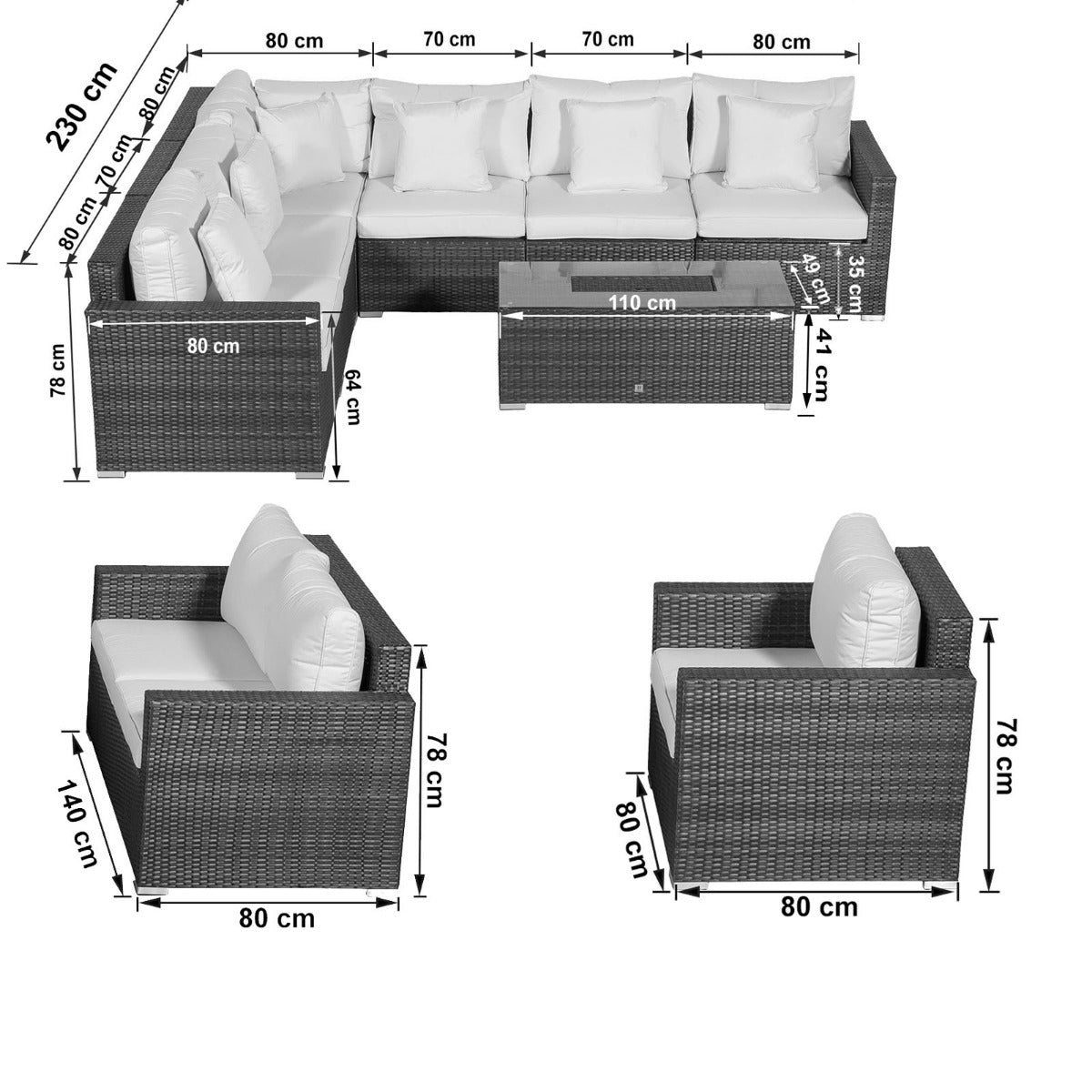 Luxurious multi-density foam and fiber padded cushions make this outdoor sofa set super comfortable. Featuring 10 cm thick seat cushions and 20 cm thick back cushions, the multi density fillings enhance the shape and structure of the cushions, providing comfort and support to your seating arrangement. Our special water-resistant fabrics protect your cushions from showers and all cushions come with removable zip-off covers for easy maintenance. Scatter cushions are included for extra comfort and luxury.